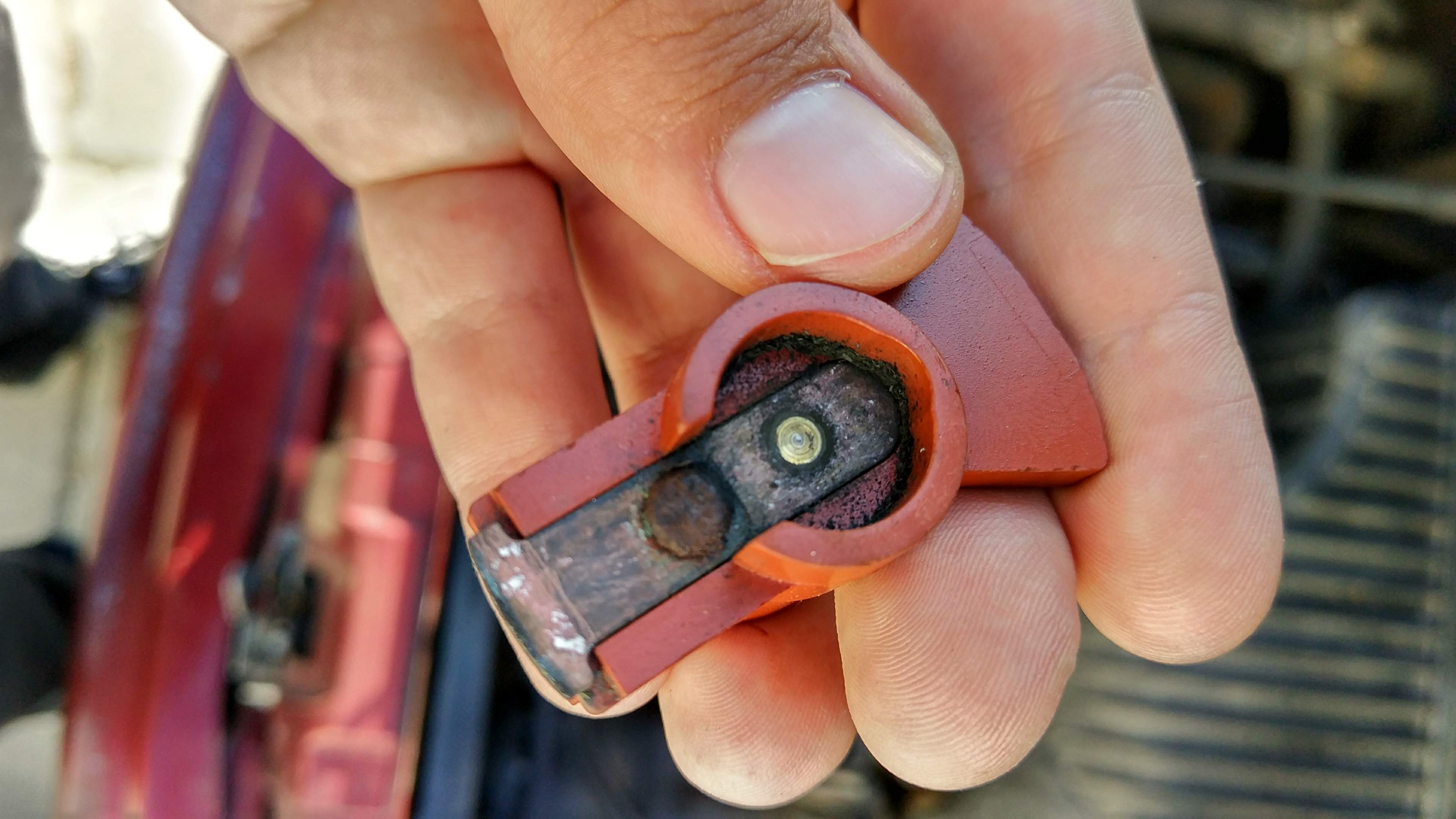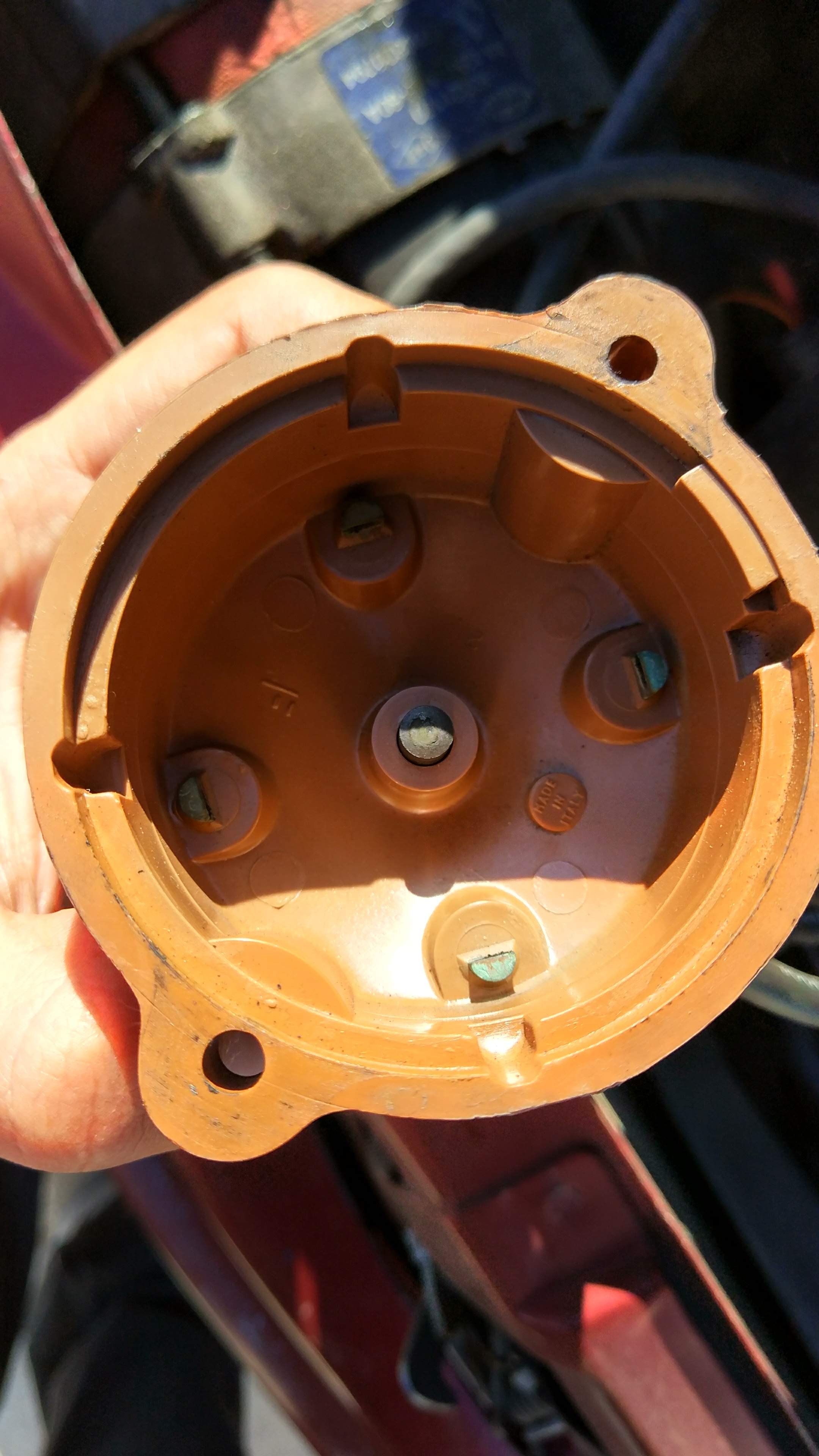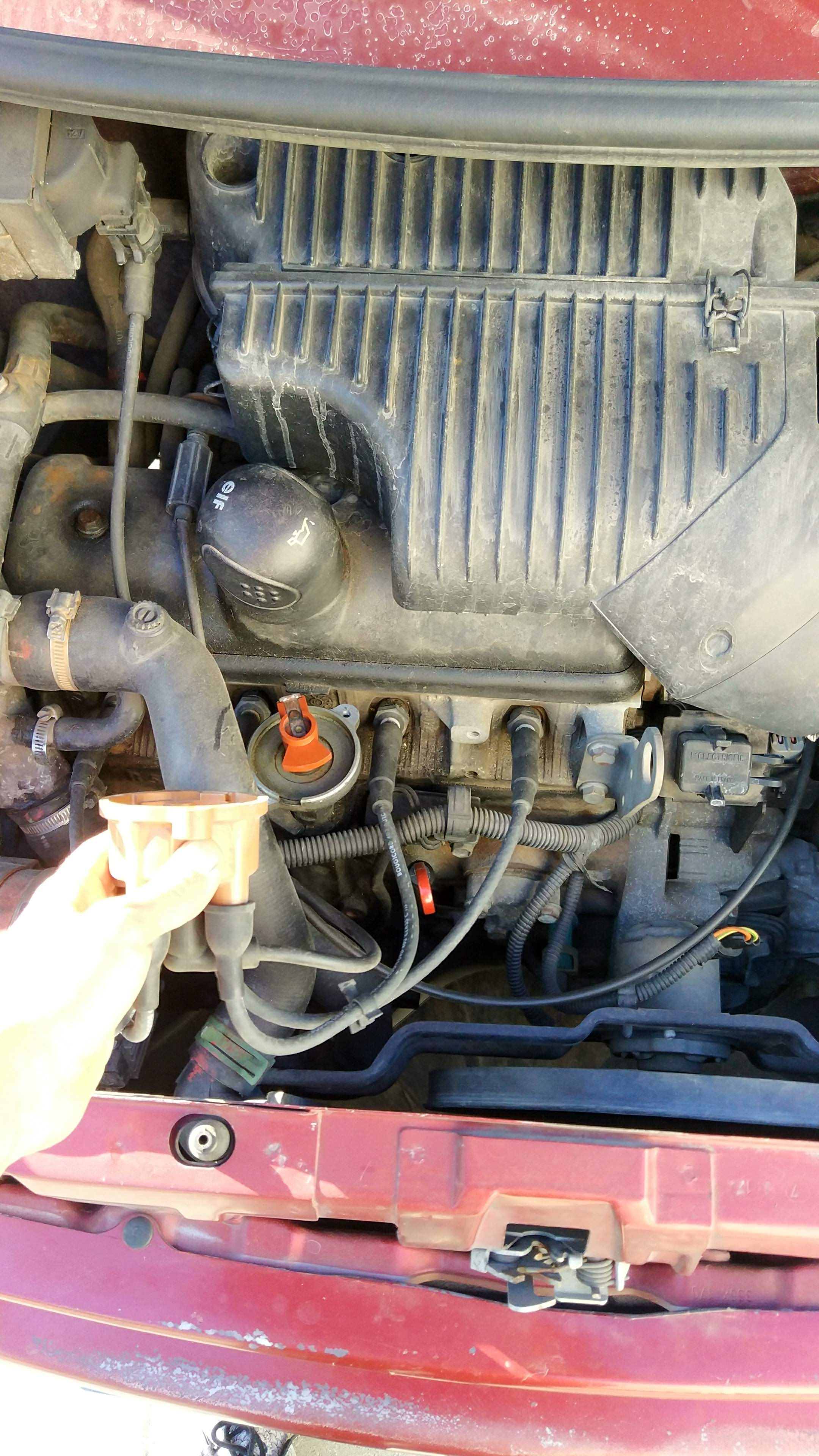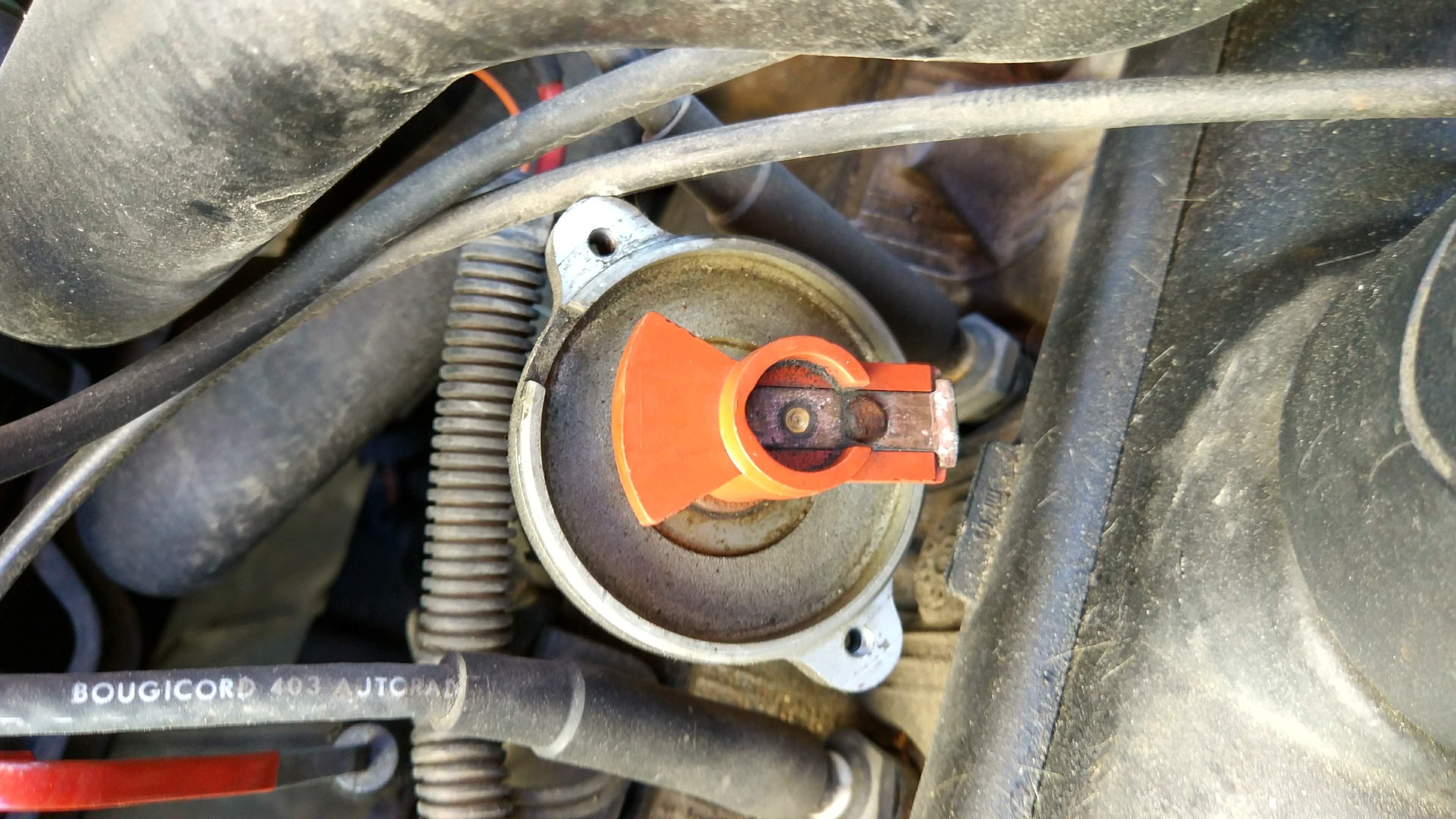 Solução:- Já tinha acontecido neste carro , com o passar de algum tempo ou em dias de bastante chuva/humidade começar a existir oxidação na distribuição elétrica para as velas de ignição devido a humidade que se infiltra dentro do invólucro do rotor/escovas.