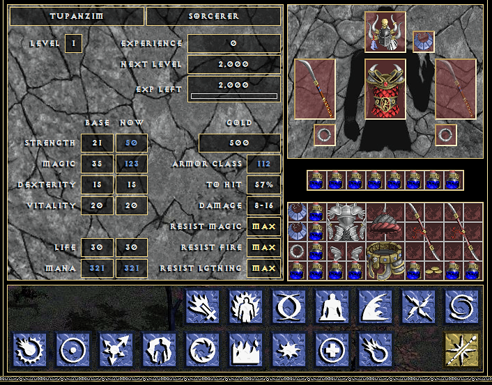 Ao iniciar um personagem o mais difícil é o mago, pois ainda não evoluiu suas magias, ele precisa encontrar os livros de cada tipo de magia em certas salas dentro das dungeons a fim de aprendê-las. Com o tempo e com magias de alto nível ele se torna muito mais poderoso.