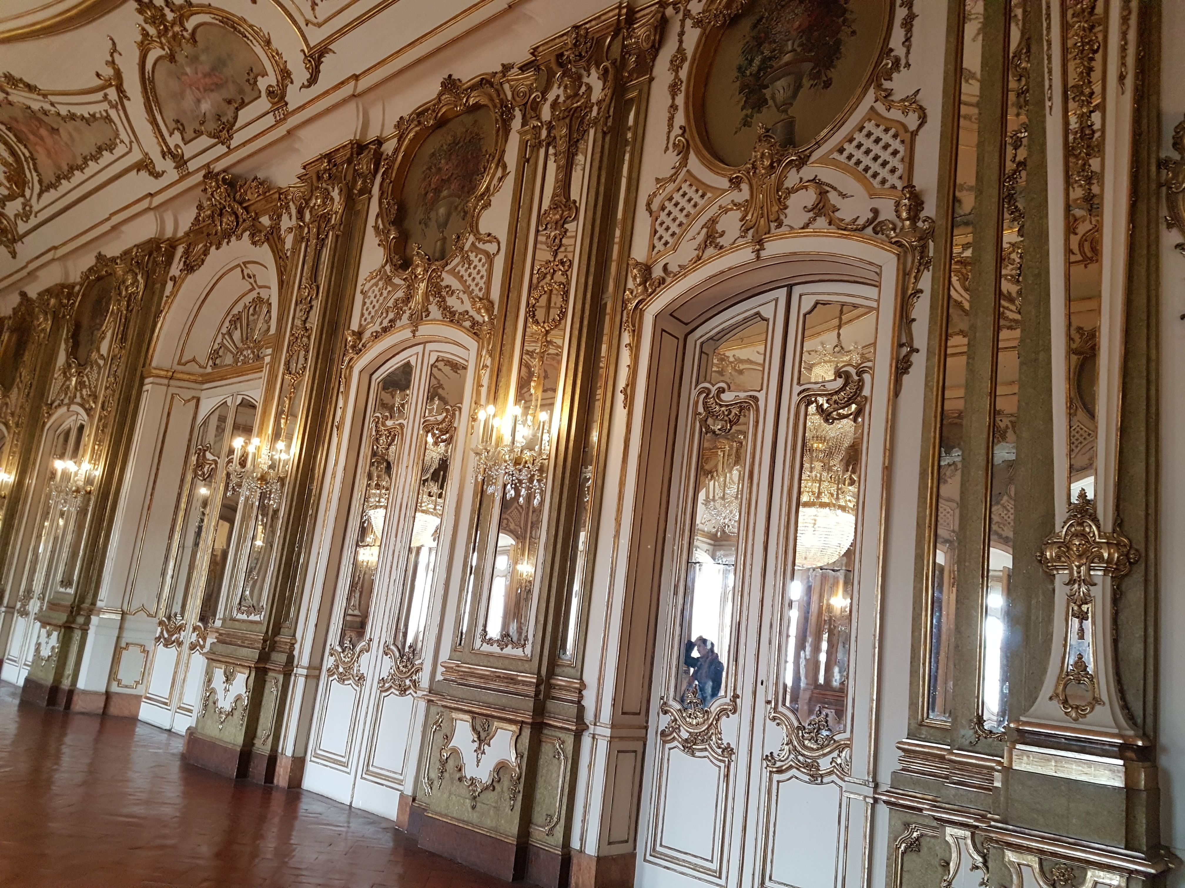 De lá, rápido pé na estrada e estávamos em Queluz, palácio e jardins. O local tornou-se residência do regente Dom João VI, e foi onde nasceu e morreu Dom Pedro IV (nosso I). Carregado de valor histórico, o palácio também é muito bonito. Os jardins, castigados pelo inverno, ainda eram muito bonitos ainda assim.