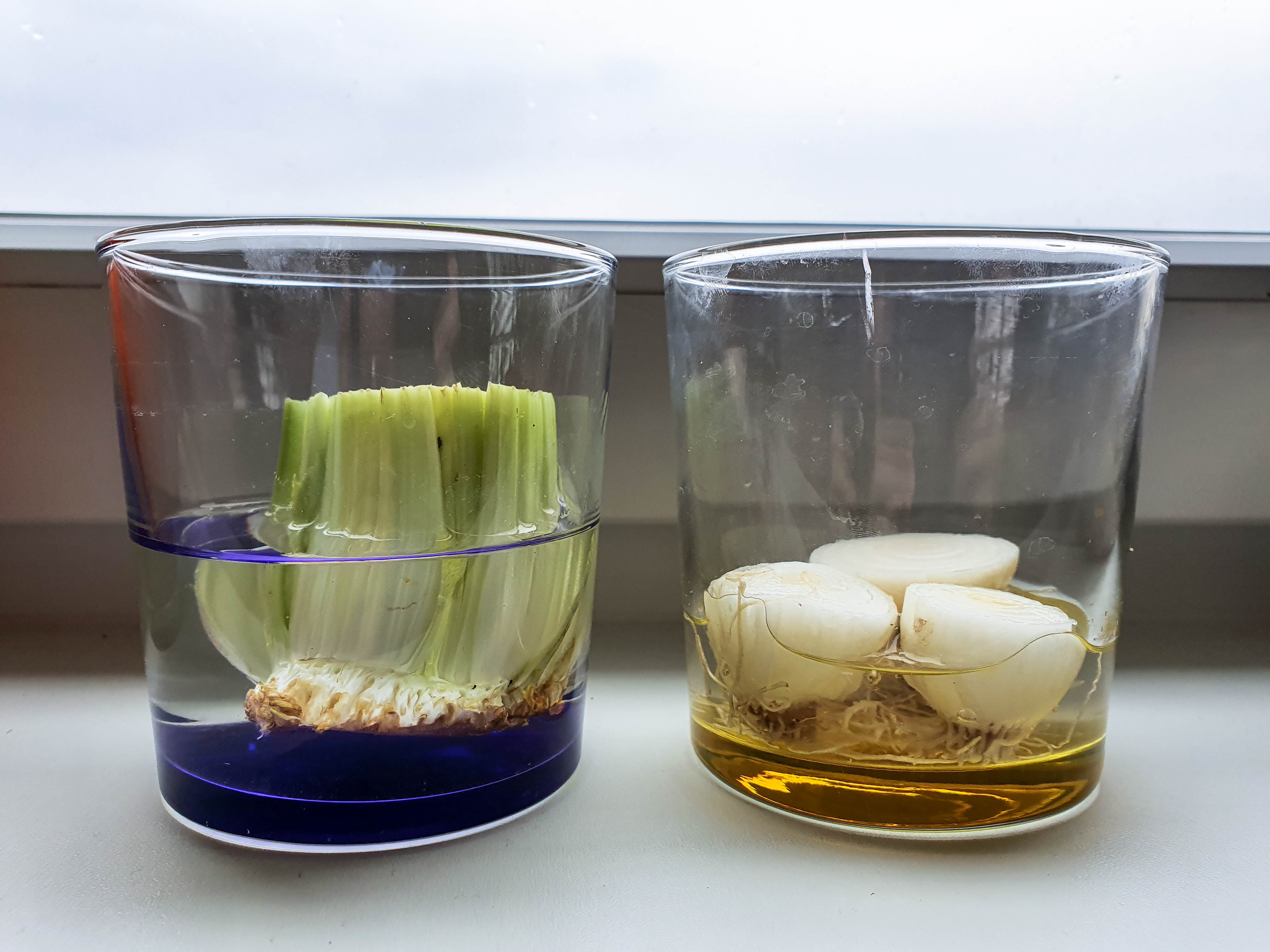 This is just a first day but after a week my celery should start sprouting and I should have my spring onions in a couple of days.