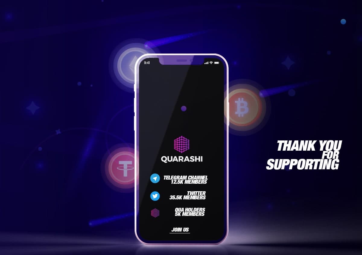 every project has its currency. The Quarashi Network Tokens (QUA) is the Quarashi Networking ecosphere indigenous virtual money. Quarashi Networks Coin is a competitive, equitably generated, and open virtual currency founded on Ethereum. So, it accepts both of the blockchains, etherium, and binance smart chains The Quarashi new feature as well as the Quarashi cryptocurrency wallets and trading, IDO or IEO Network, are both using QUA as a multi-functional currency.