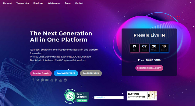 The point of interaction of Quarashi Network looks current and responsive, where clients can explore effectively and easily. Designers focus on solace and simplicity of route with the goal that when clients utilize the Quarashi Network site or application they can explore without a hitch. On the site, the engineer clarifies exhaustively what Quarashi Network is and the highlights it offers. Clients can undoubtedly comprehend the elements and benefits of Quarashi Network. The engineer additionally incorporates the archives required by clients to have the option to see all the more profoundly about Quarashi Network. What's more the designer additionally incorporates a connection to the pre-deal, so clients who are keen on purchasing QUA tokens can straightforwardly purchase through the site. Quarashi Network is a finished set-up of arrangements across the board stage zeroed in on furnishing the client with full protection and namelessness.