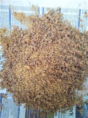 Une fois bien sec, j'ai "secoué" le quinoa au dessus du carton pour en faire tomber les graines.