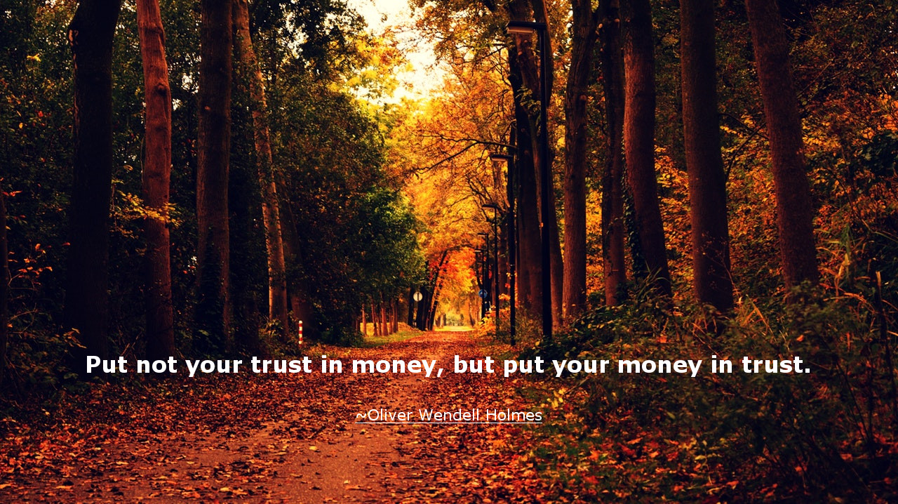Money Quotemoneyminds (44)in #quotes • 8 years ago Money Quote Put not your trust in money, but put your money in trust. ~Oliver Wendell Holmes #money #moneyminds #finance #freetopia
