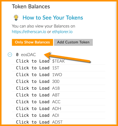 Click “Add Custom Token” on the right-hand side under “token balances,”