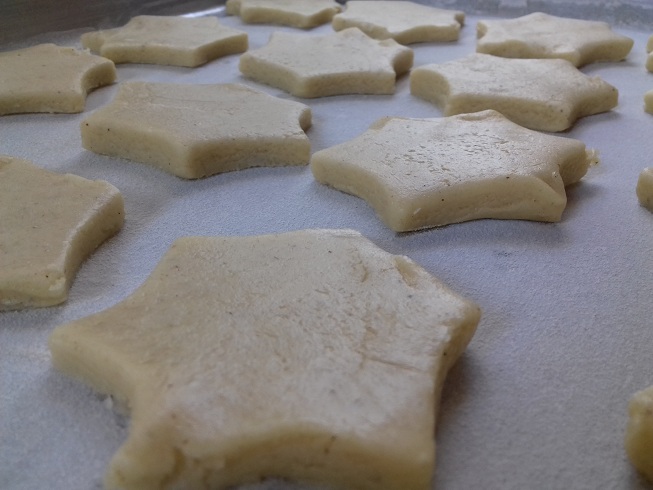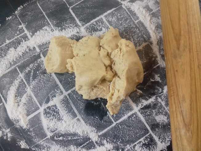 - Refrigeramos la masa por el espacio de 30minutos. Al retirar de la heladera, estiramos la masa y cortamos las galletas con ayuda de un cortador de tu preferencia. Sino tienes cortador puedes hacer que la masa tengo forma de rodillo, la cubres con papel film o bolsa plástica y la dejas en el congelador por el espacio de 2 horas. Al retirarle te sera fácil cortar ruedas.
