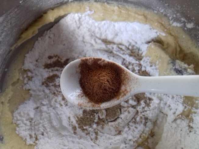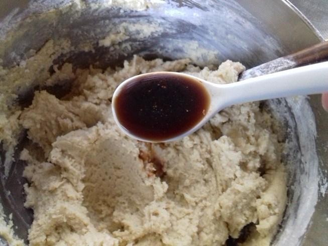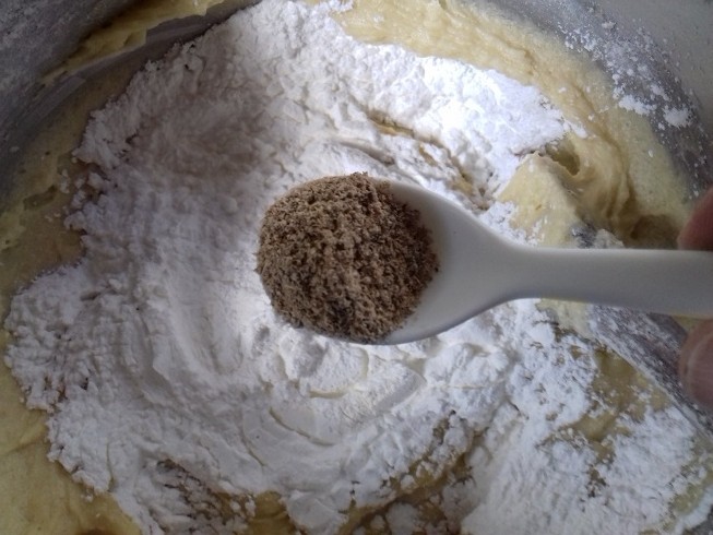- Agregamos los ingredientes secos (harina, fécula de maíz y especies) e incorporamos bien hasta formar una masa.