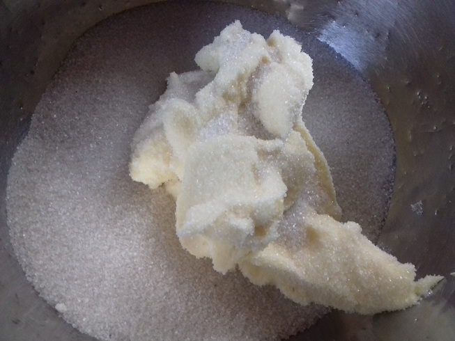 - En un bowl colocamos la margarina junto a el azúcar e incorporamos bien. Seguido agregamos el huevo y formamos un pasta bastare cremosa.