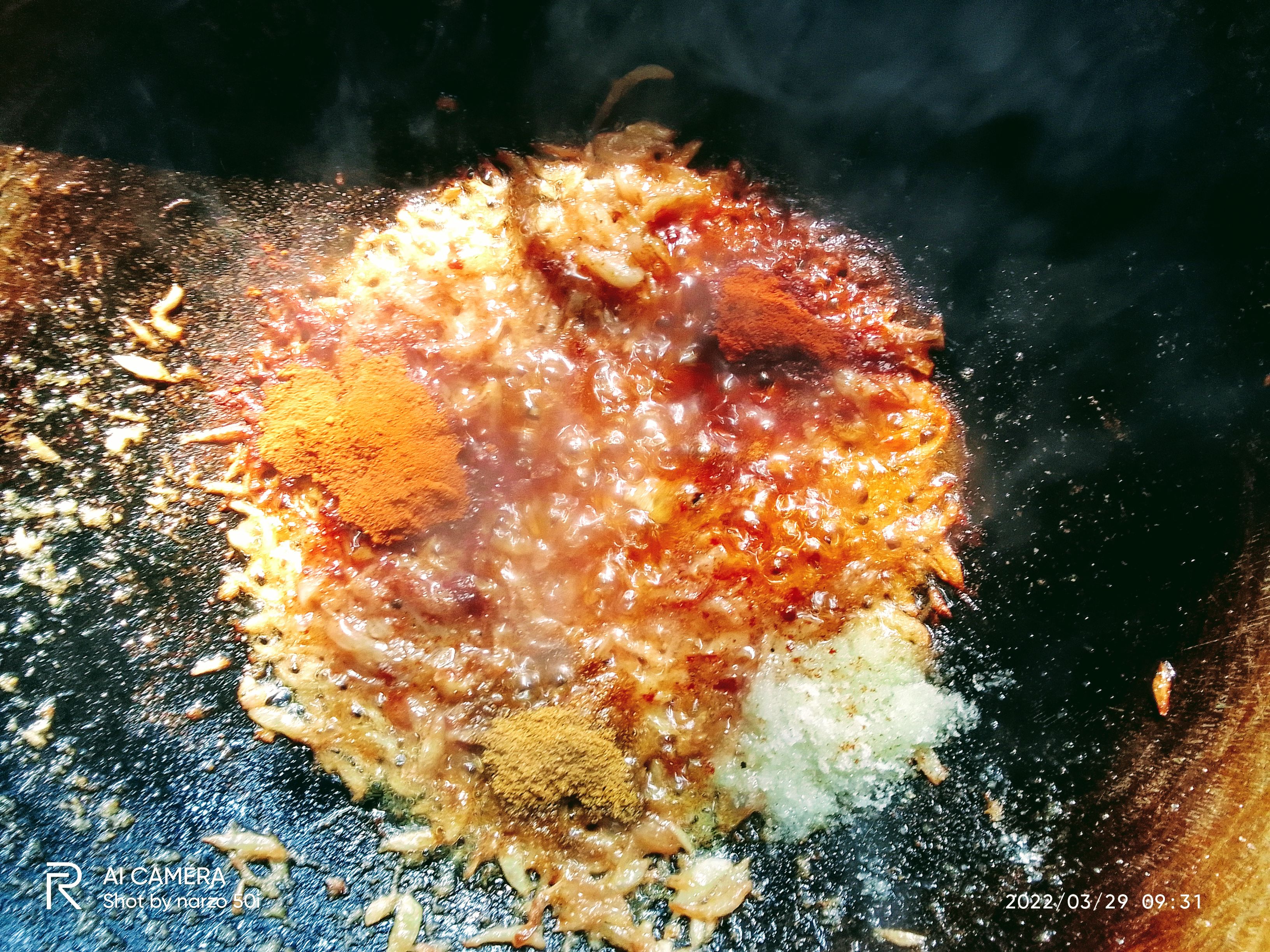 এবারের মধ্যে মরিচের গুঁড়া, হলুদের গুঁড়া, ধনিয়া গুঁড়া, পরিমান মত লবণ দিয়ে দিতে হবে।