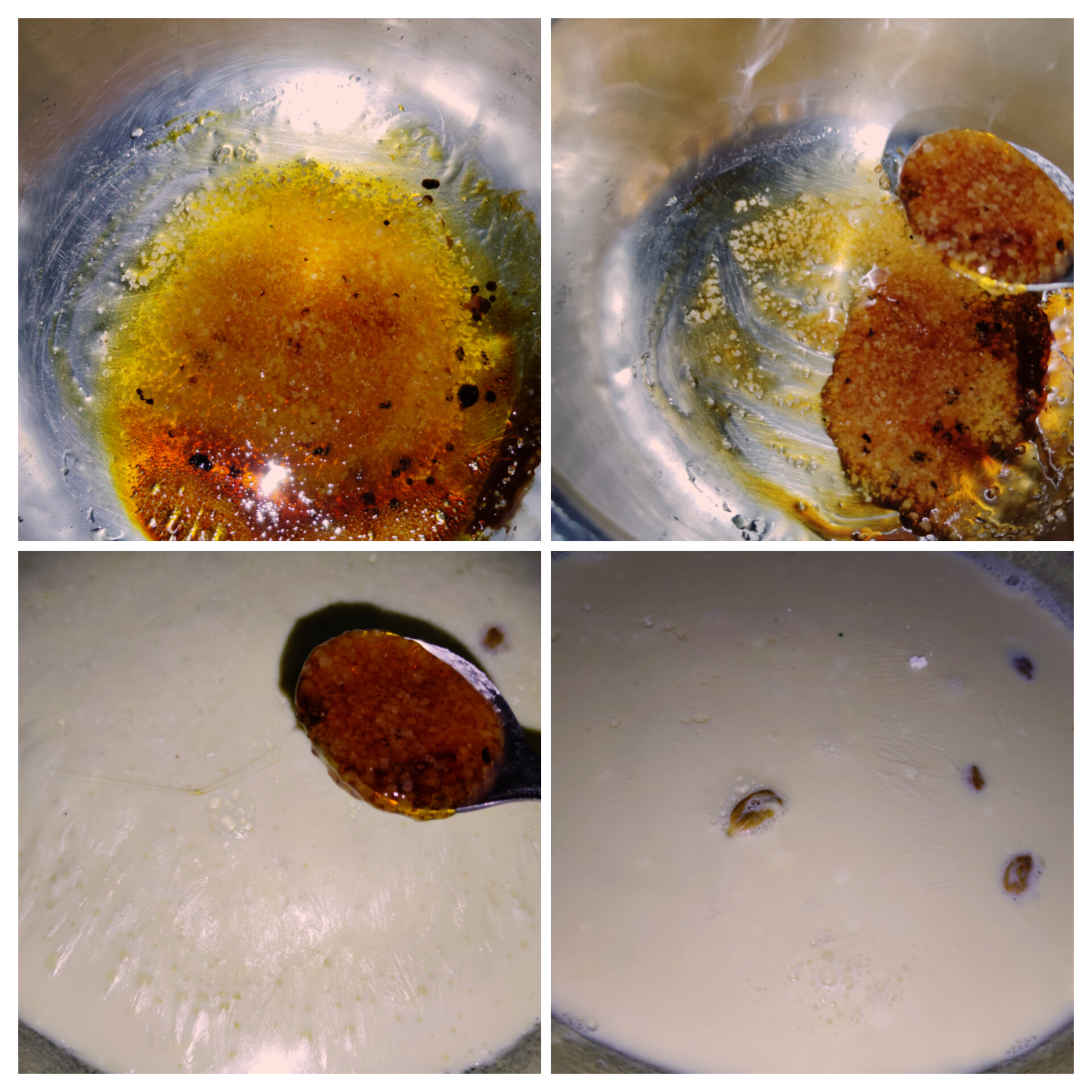 কুলফি এর মতন একটু ব্রাউন কালার আনার জন্য, একটা ছোট বাটিতে সামান্য পরিমাণ চিনি নিয়ে, সেটাকে হালকা আগুনের তাপে পুড়িয়ে নিলাম। তারপর সেটাকে দুধের সাথে গুলিয়ে নিলেই একটা সুন্দর কালার চলে আসলো। এরপর দুই মিনিট গরম করে সেটাকে নামিয়ে নিলাম আর ঠান্ডা হওয়ার জন্য কিছুটা অপেক্ষা করলাম। এই আইসক্রিম তৈরির শুরু থেকে শেষ পর্যন্ত পুরোটাই কিন্তু লো ফ্লেমে করতে হবে।