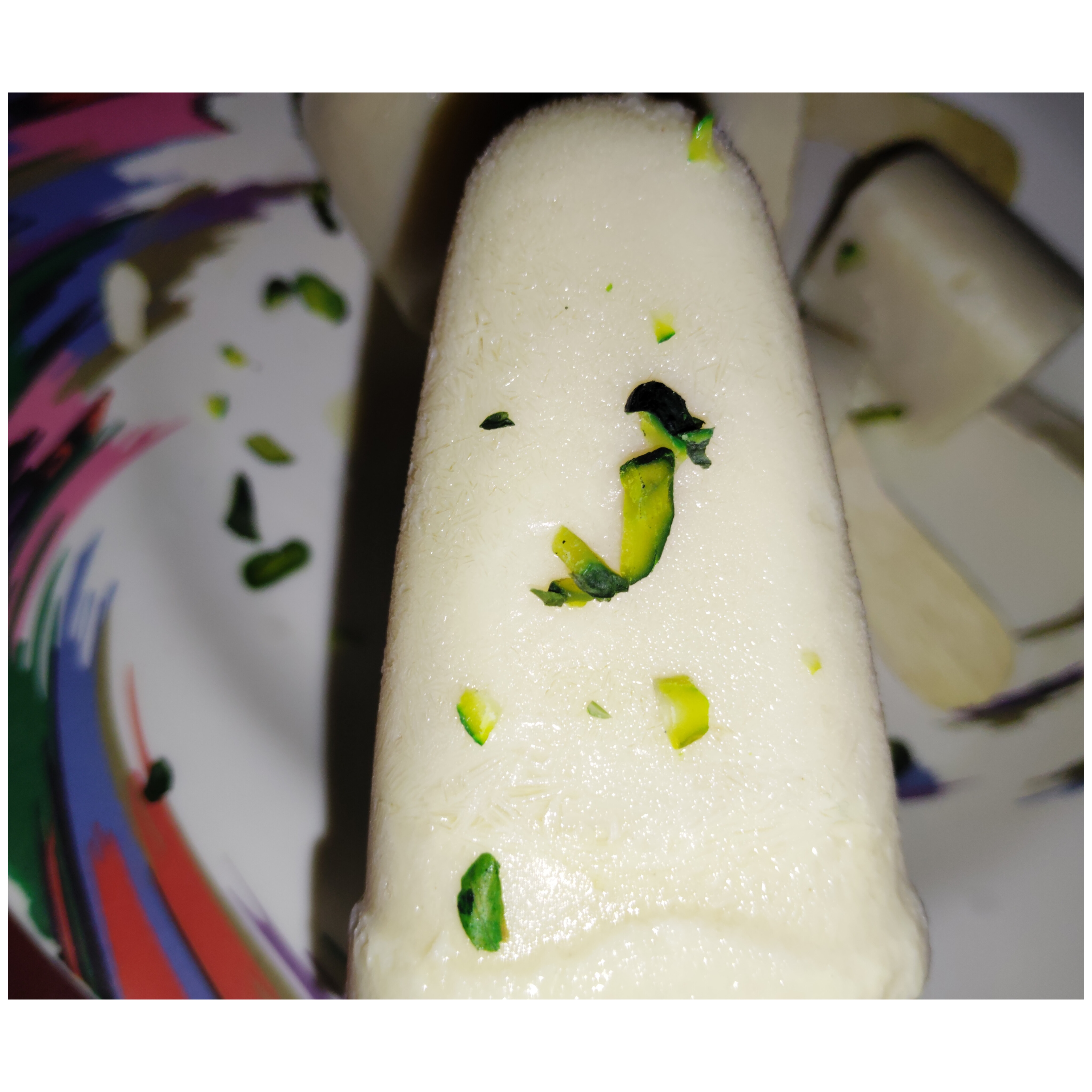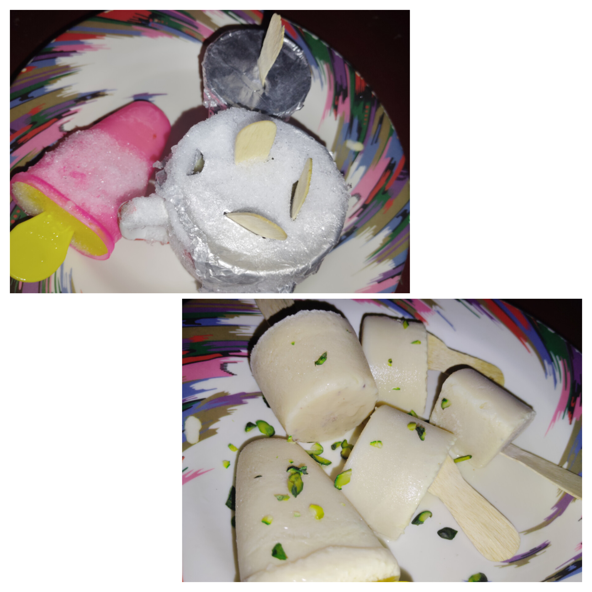 ১৮ ঘণ্টা পর তিন রকম আকৃতির তিনটি আইসক্রিম বের করে নিয়ে , সেগুলো একটি প্লেট রেখে উপর দিয়ে পেস্তা বাদাম কুচি ছড়িয়ে দিয়ে কয়েকটি ফটোগ্রাফি করে নিলাম । তারপর খেয়ে দেখলাম সত্যি দারুন হয়েছে খেতে। আপনারাও বাড়িতে এভাবে তৈরি করুন,আশা করি ভালো লাগবে খেতে।