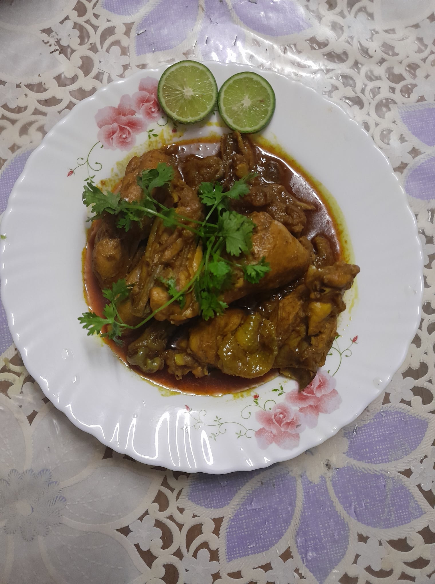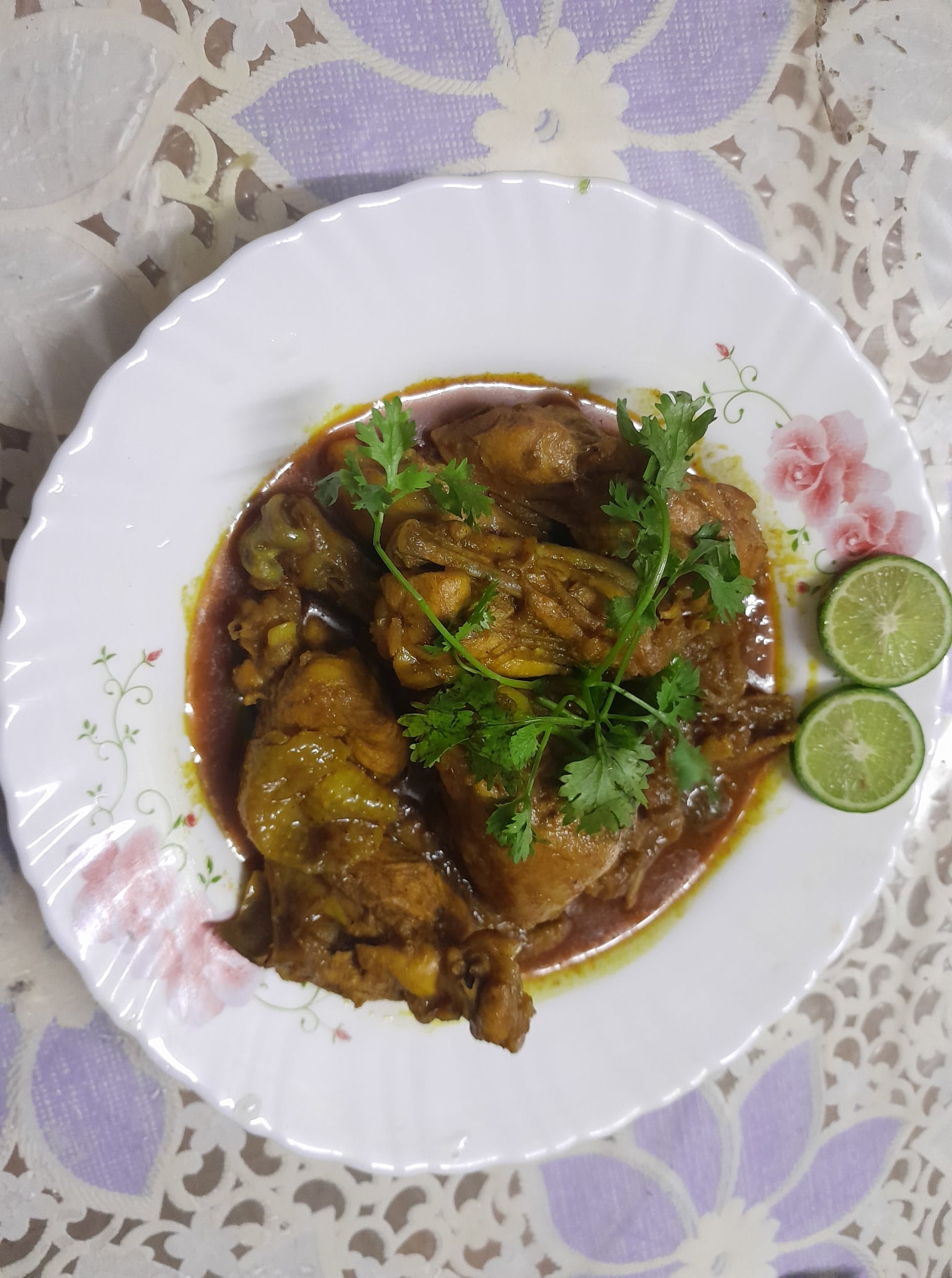 দেশি মুরগির স্বাদ অন্যান্য মুরগির তুলনায় অনেক বেশি। তাছাড়া আপনি নিজে উৎপাদন করার কারণে অরজিনাল দেশি মুরগি পেয়েছেন। তা না হলে তো বাজার থেকে দেশি মুরগি কিনতে গেলেই নকলটা দিয়ে দেয় বোঝার উপায় নেই। অনেকগুলো পেঁয়াজ দিয়ে মশলাটা বেশ ভালোভাবে কষিয়েছেন। যার কারণে মাংসের কালারটা এত সুন্দর এসেছে। দেখে মনে হচ্ছে খুবই সুস্বাদু হয়েছিল।