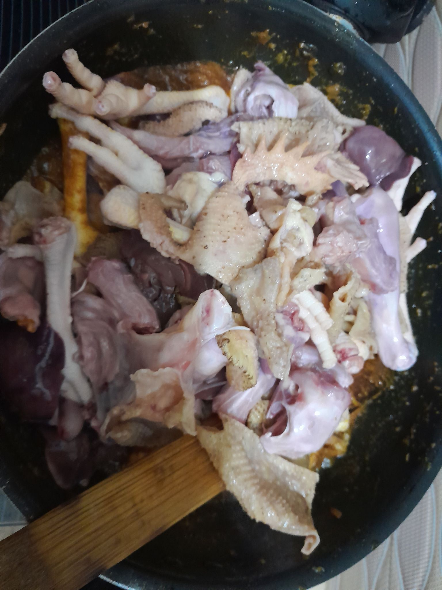 প্রথমে মাংসগুলোকে ভালো করে পরিষ্কার করে ধুয়ে পানি জড়িয়ে রাখতে হবে। তারপর একটা হাড়িতে সরিষার তেল এ পেঁয়াজ কুচি দিয়ে দিব ।