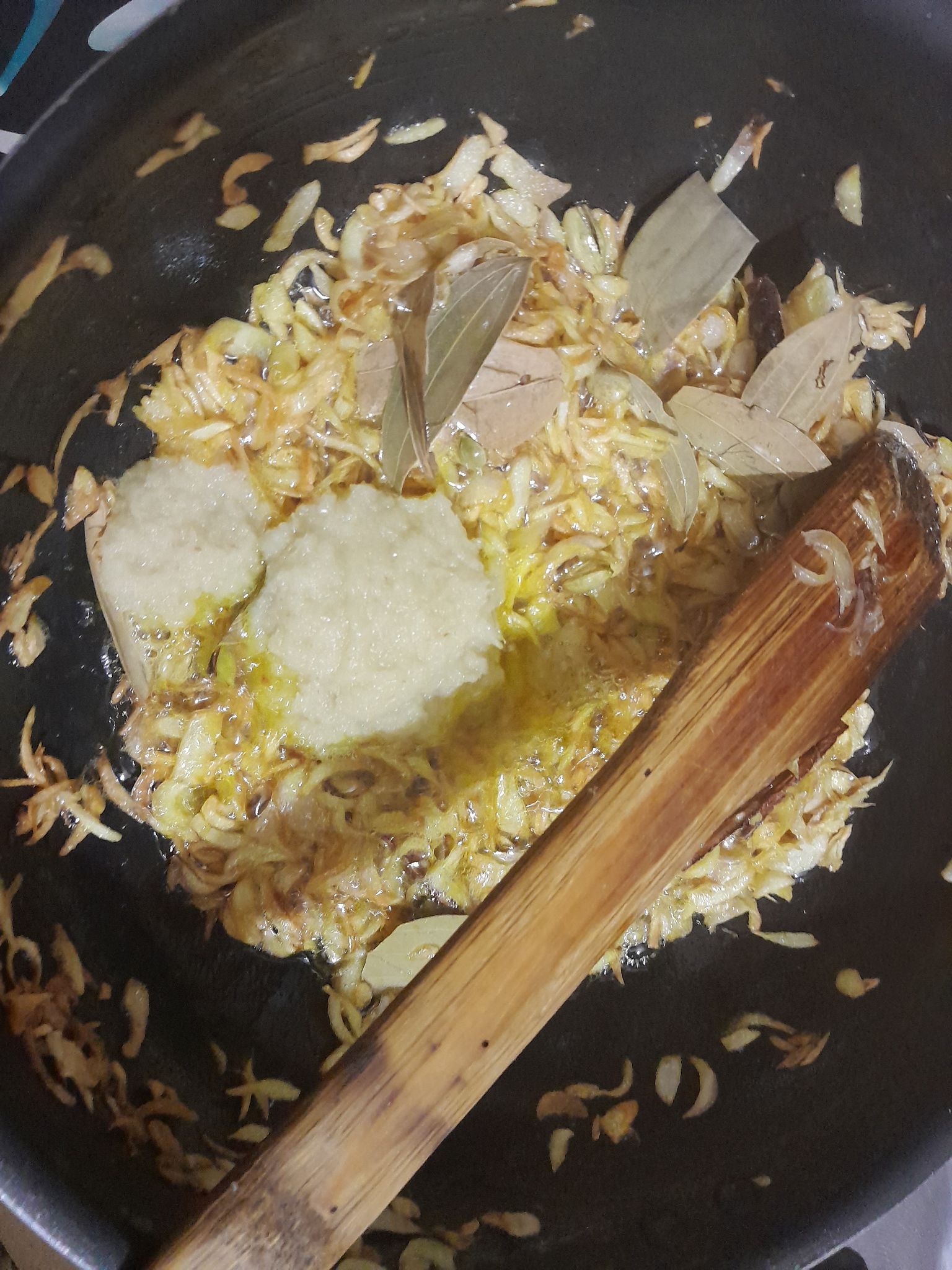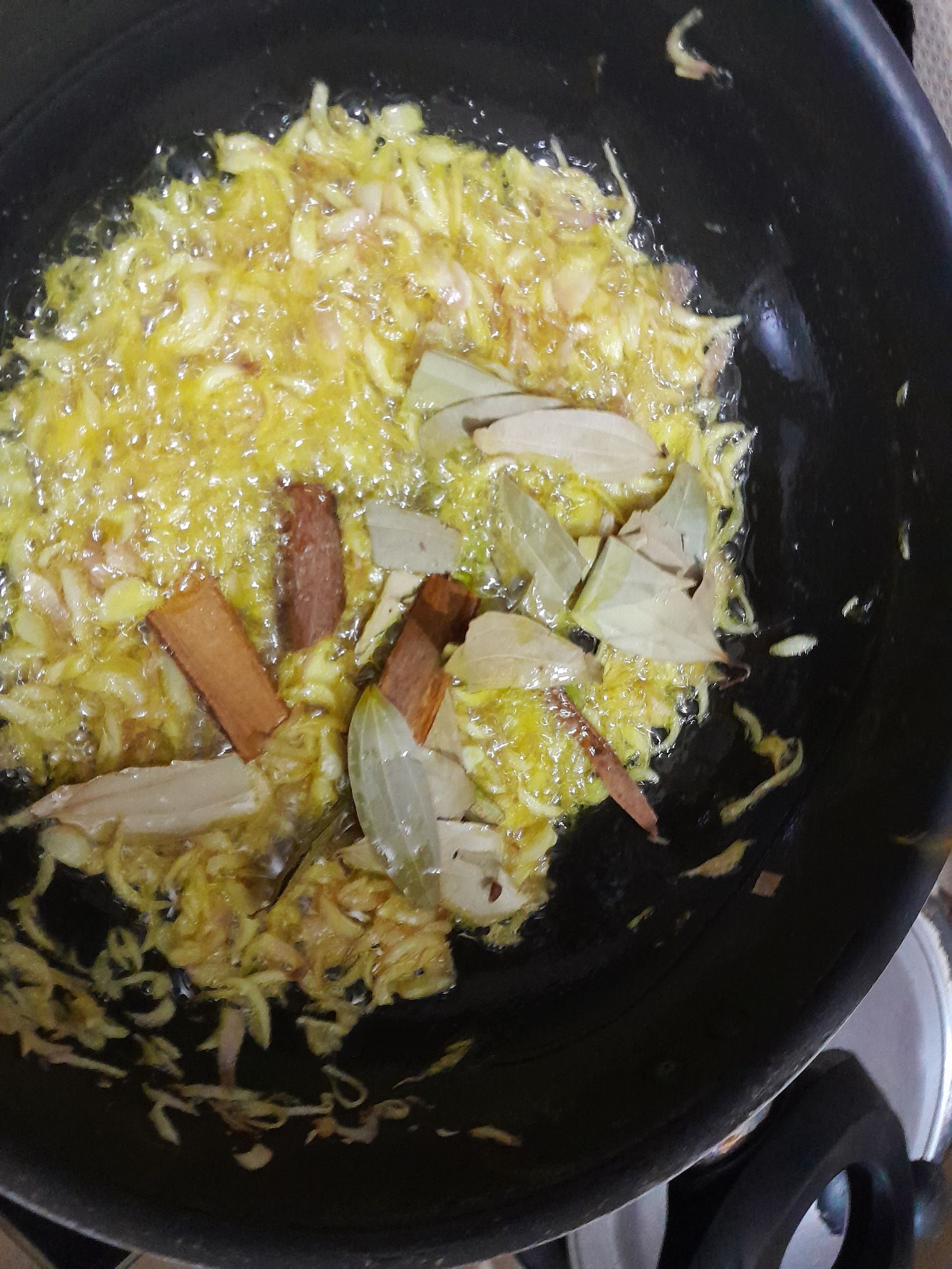 পেঁয়াজ কুচি কিছুক্ষন ভেজে তারপর আস্ত মসলা দিয়ে দিব।