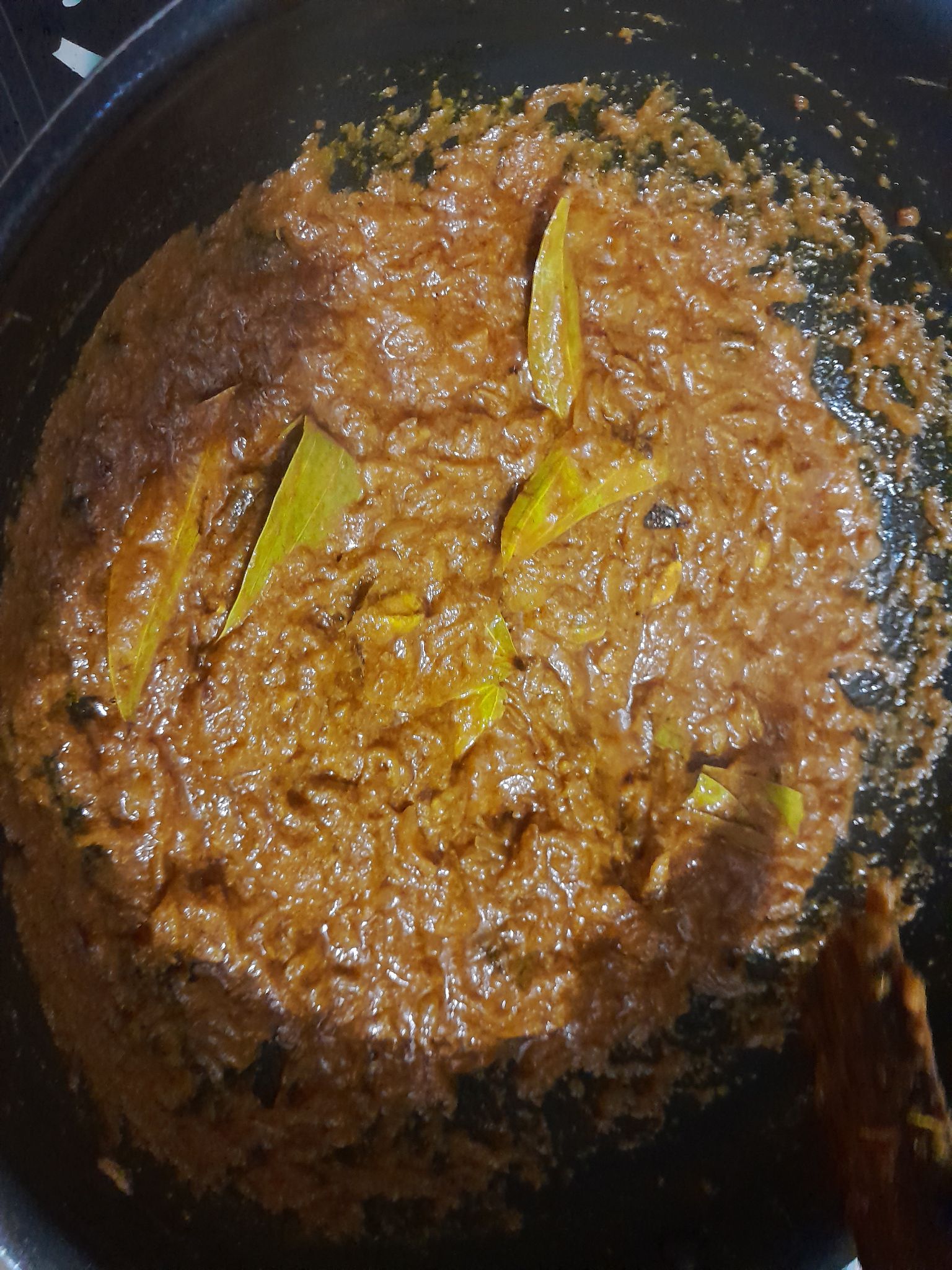 কিছুক্ষন কষানোর পর ,প্রায় সিদ্ধ হয়ে এলে ,তাতে গরম পানি দিয়ে দিব।