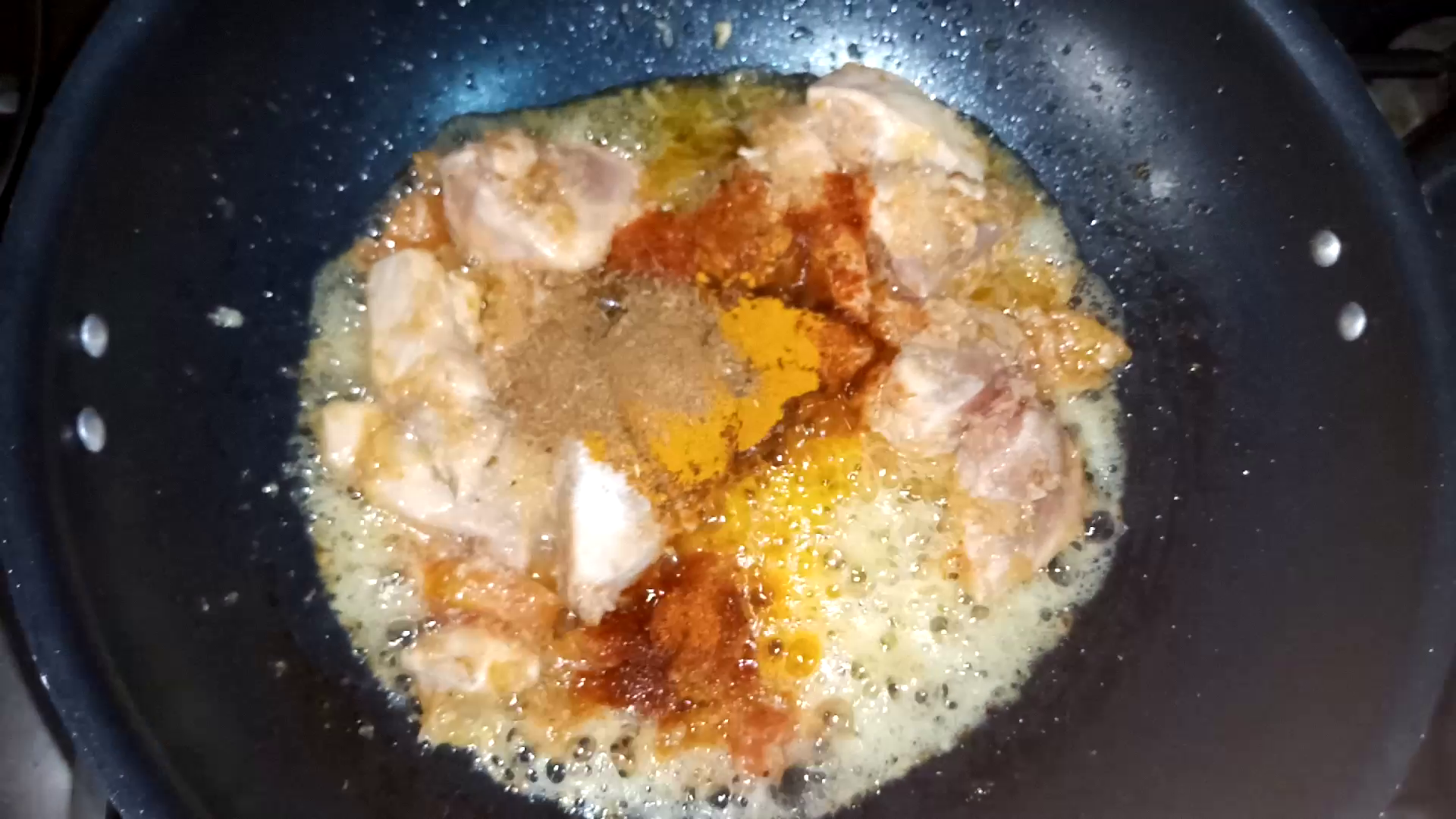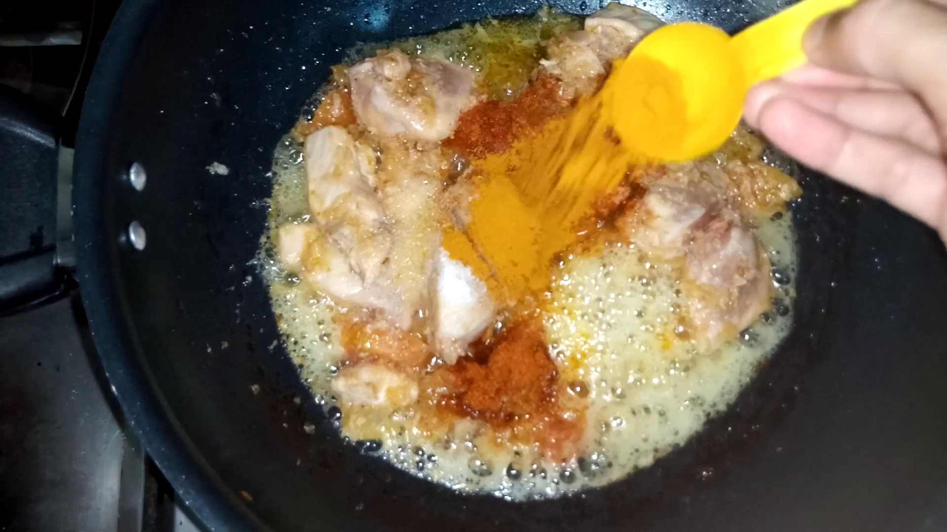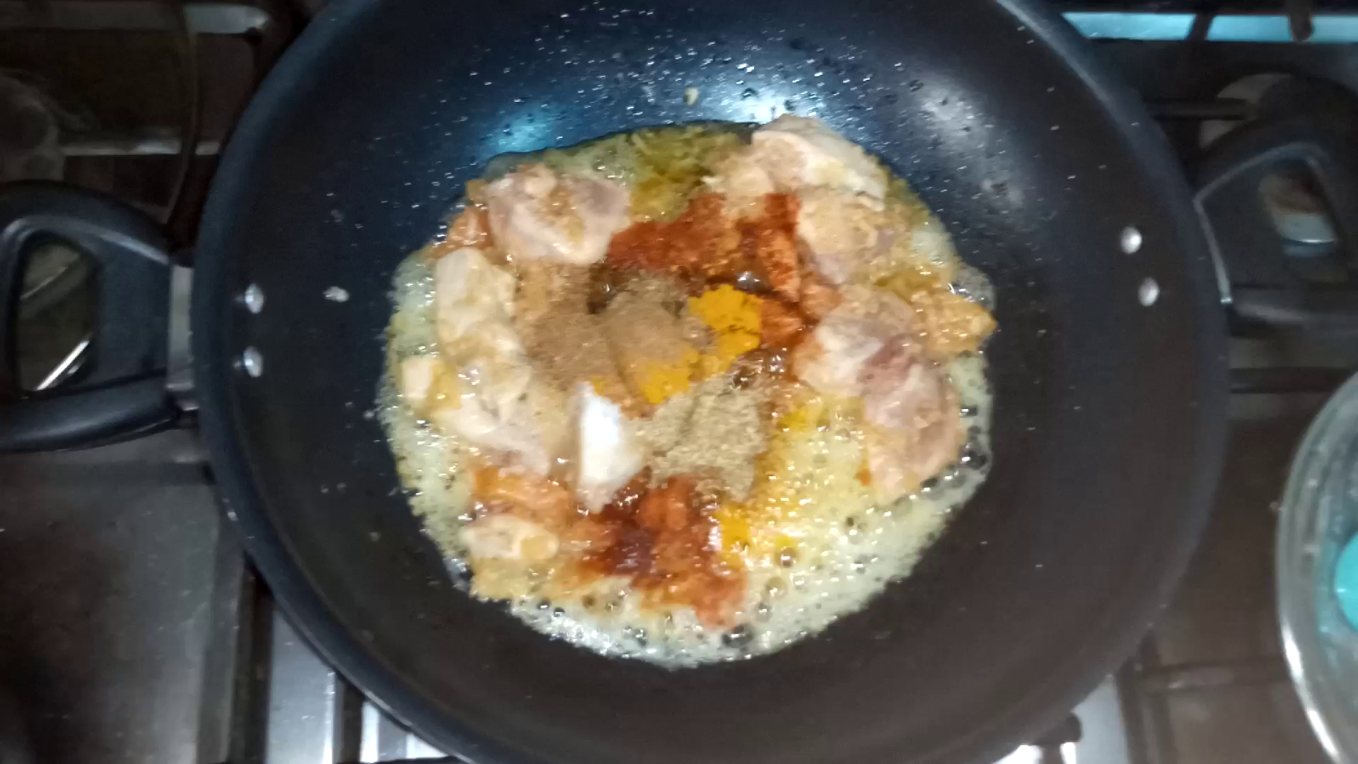 add dry spices salt,red chili powder, coriander powder ,cumin powder, in chicken
