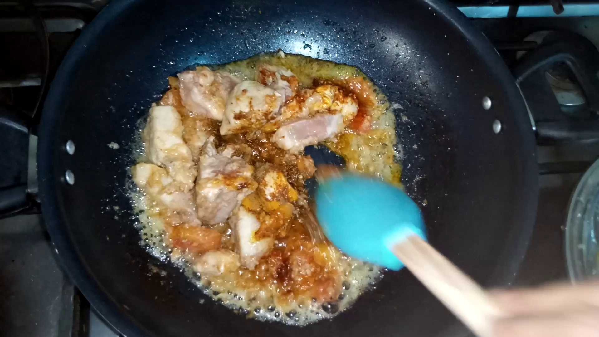 after 2 minutes add yogurt in chicken ( when you added yogurt make sure heat is low )