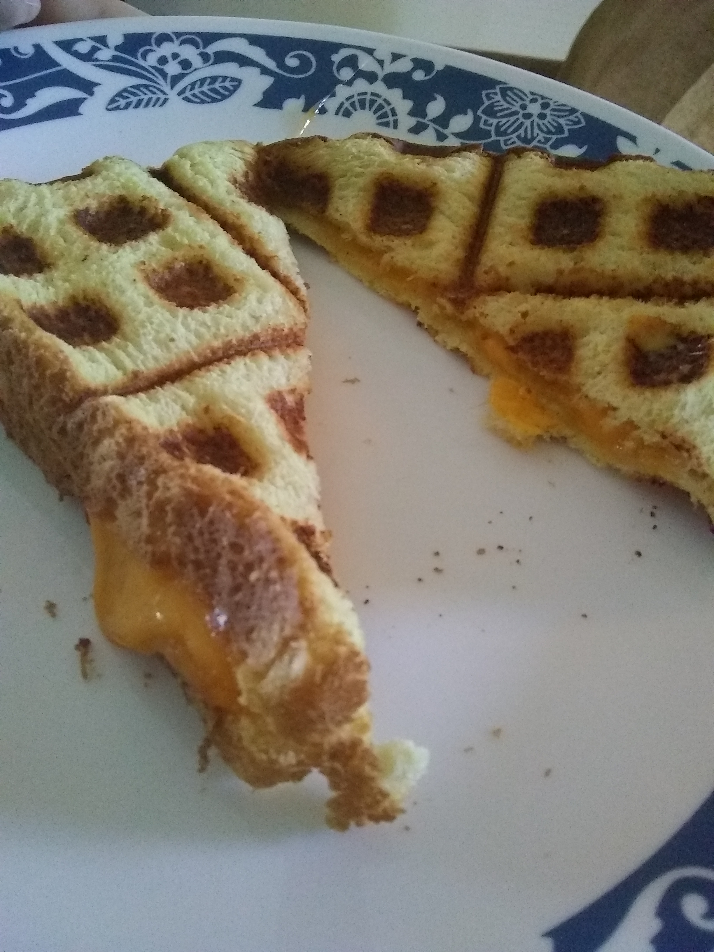 Waffle iron cheese sandwichrecipes-n-stuff (37)in #recipes • 7 years ago Kind of like a panini, I think? Ingredients: bread, cheese. Put in waffle iron. Wait. Remove from waffle iron. Consume. I like these much better than cheese sandwiches made in the oven because the bread doesn't dry out. #food #cheese #sandwiches