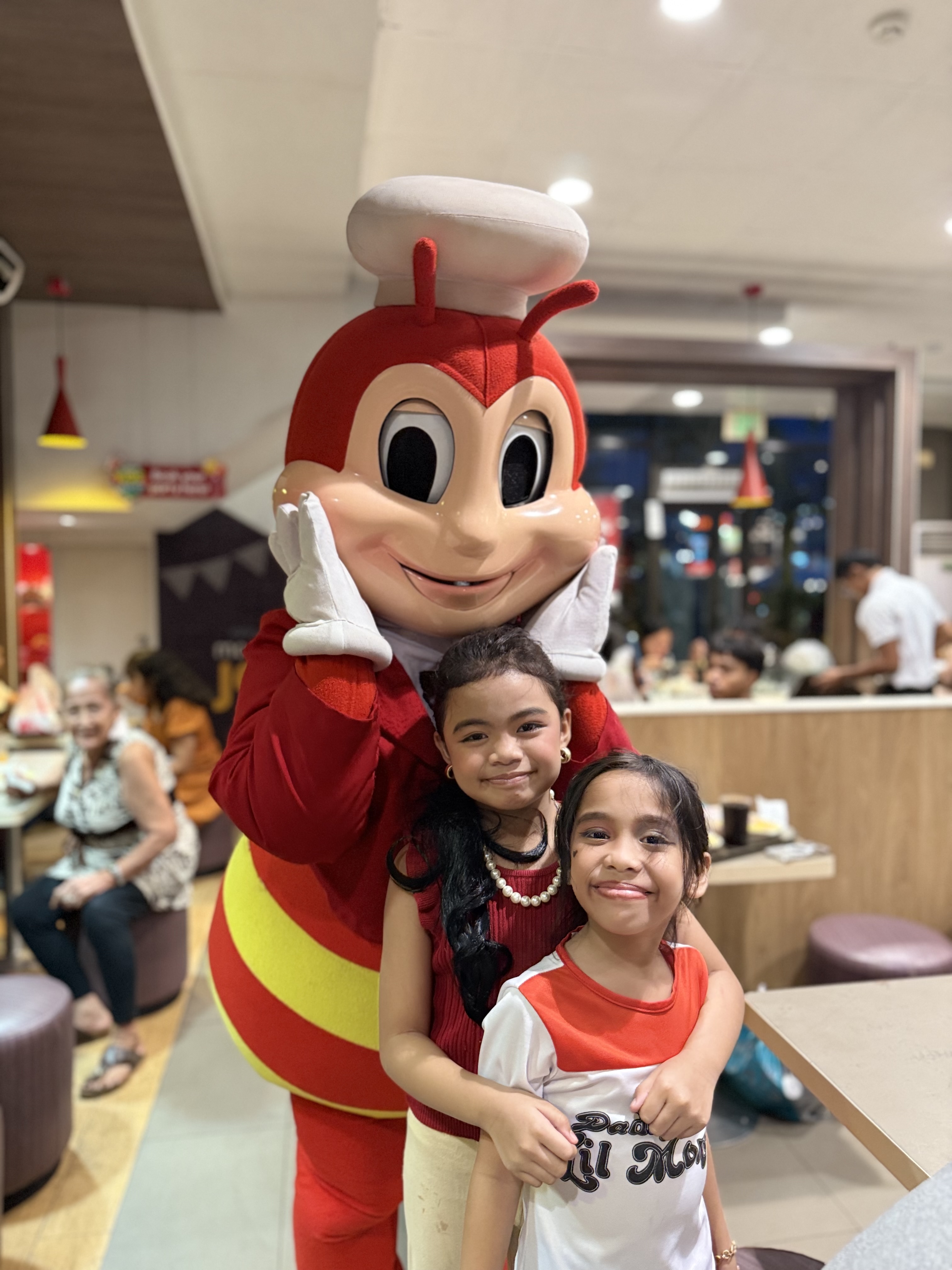 As a reward for a job well done, we dine in at their favorite fastfood which is Jollibee. And it is so timely that the Jollibee masscot went out and we had a pictorial.
