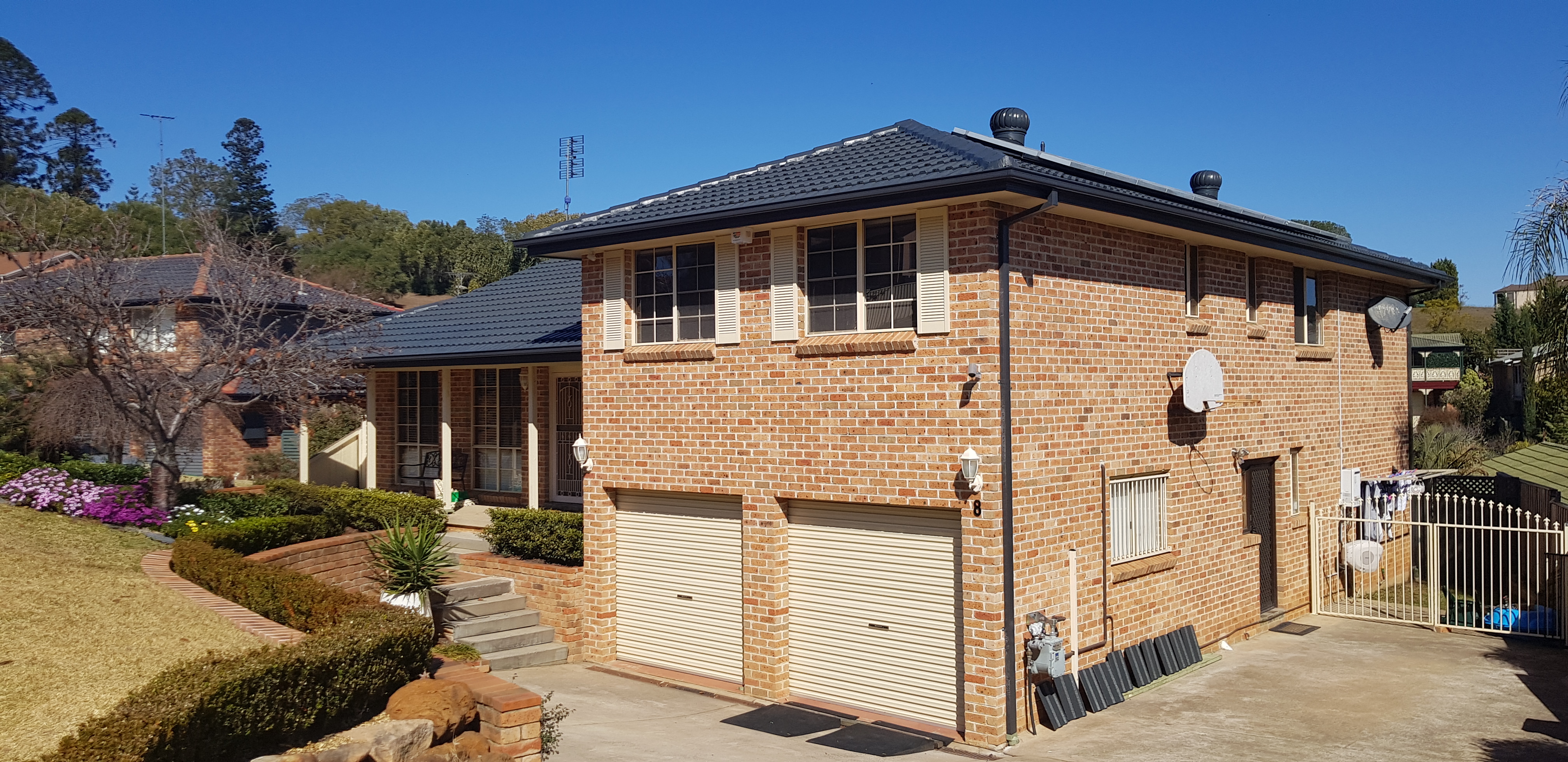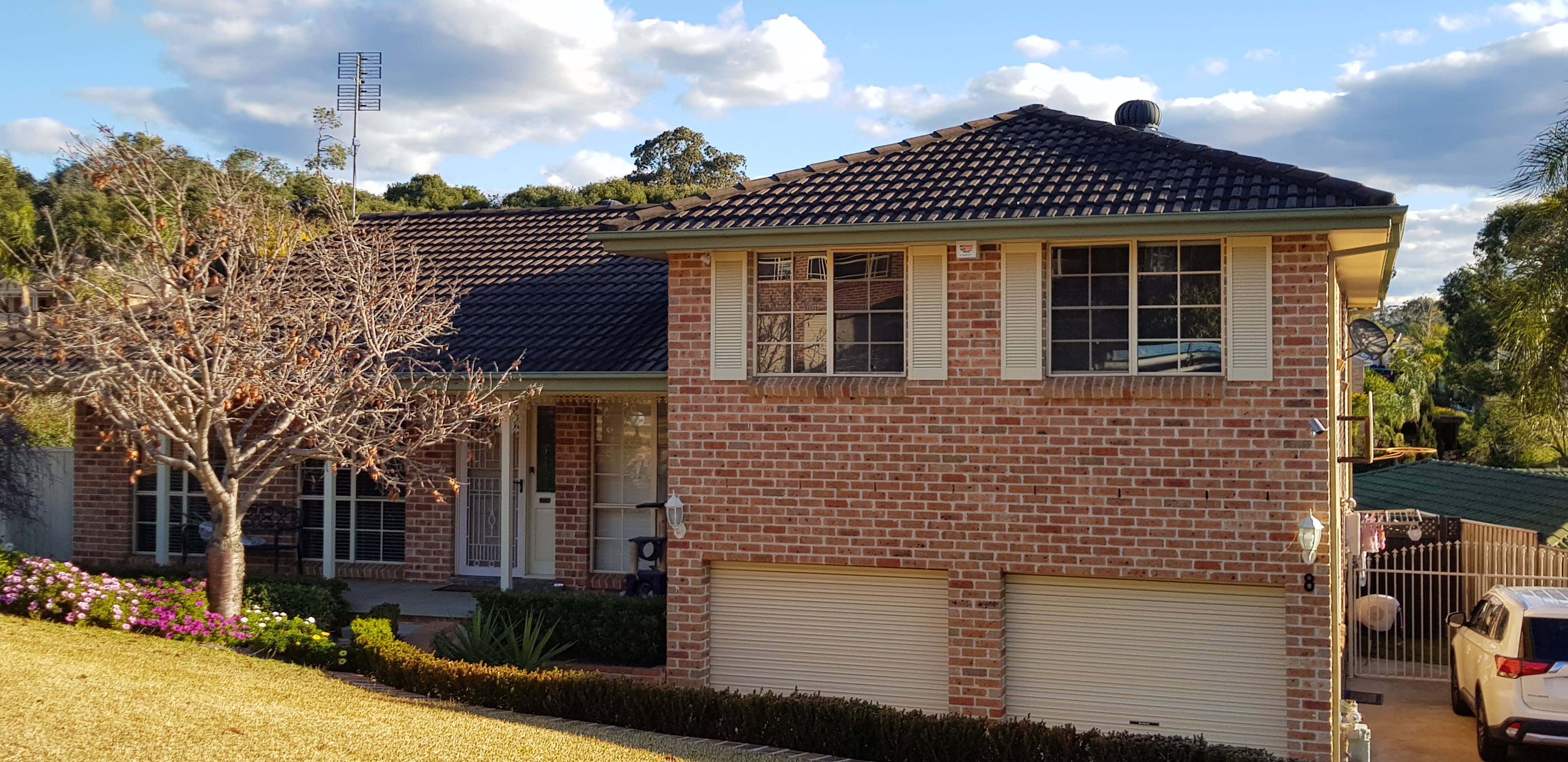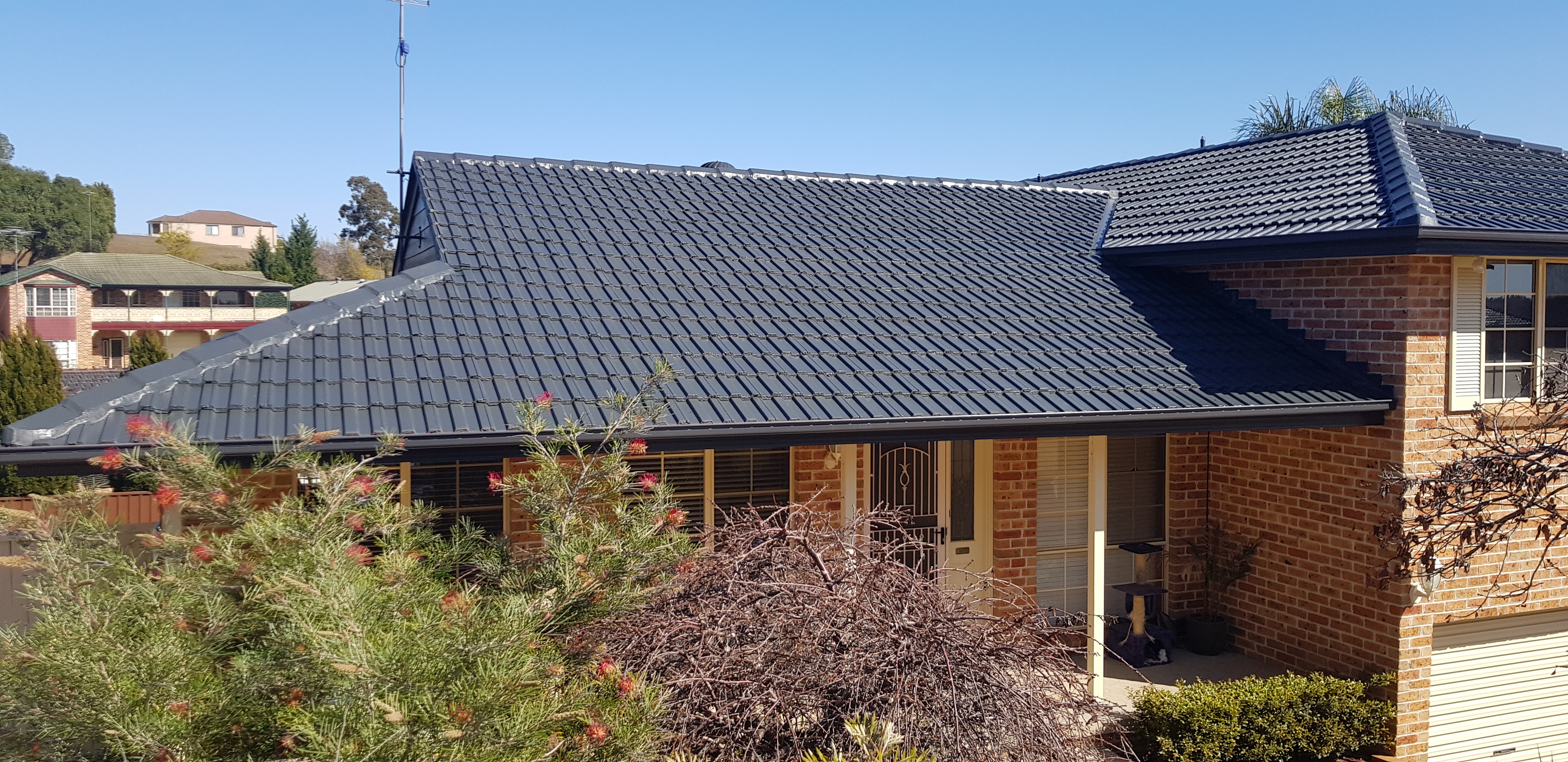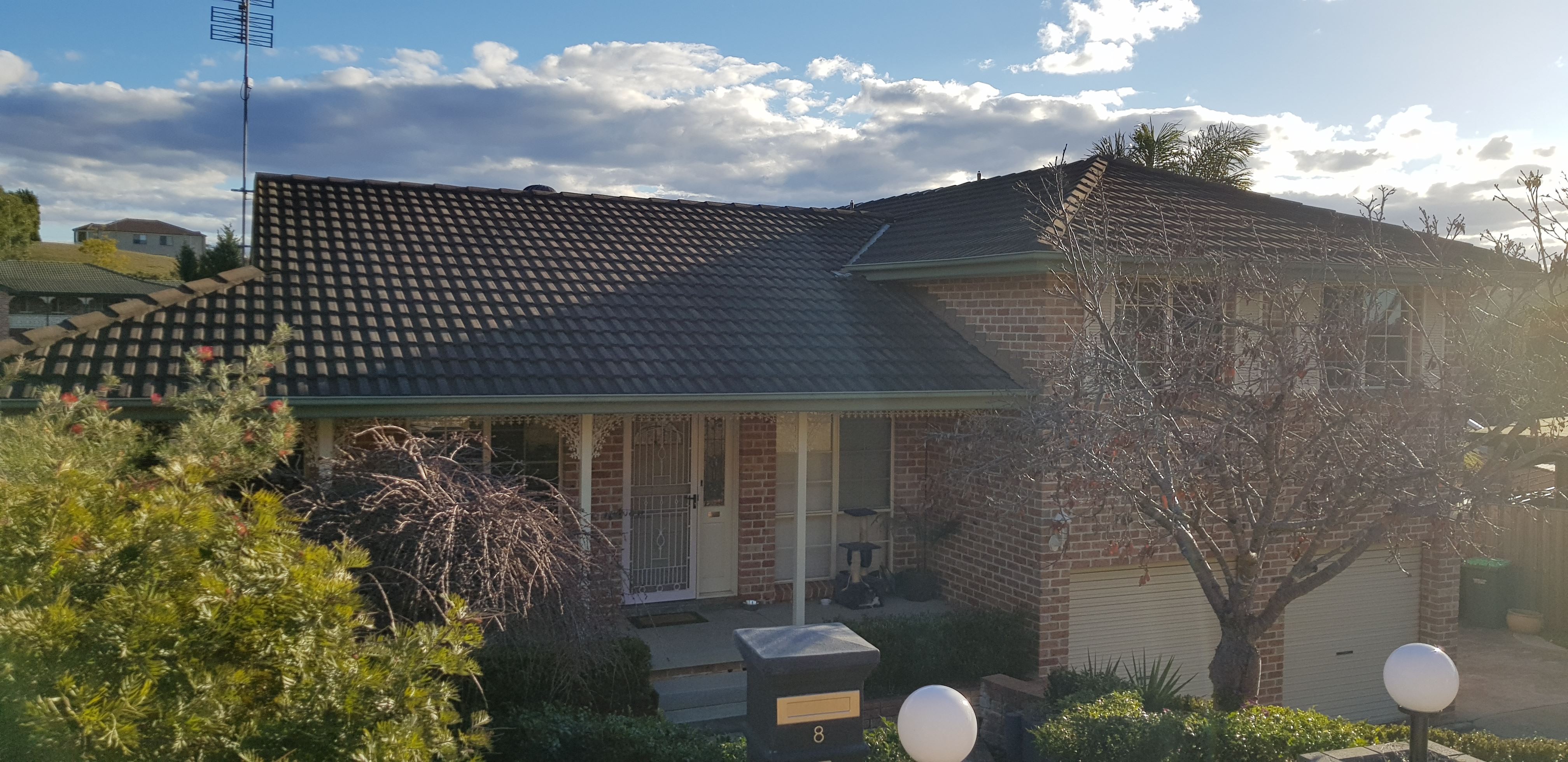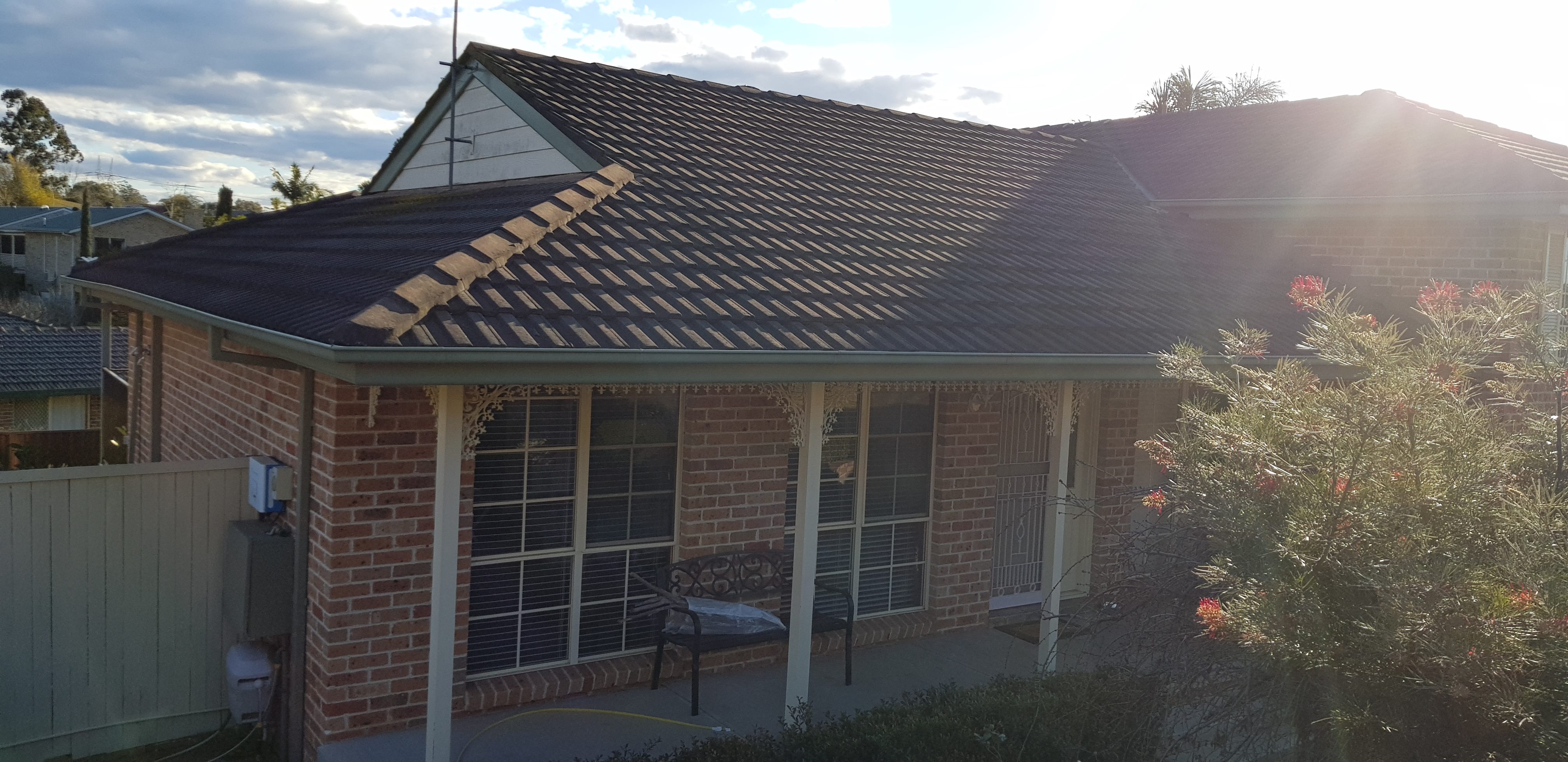 The roof restoration process basically involved replacement of any broken/cracked tiles, high pressure clean, re-point the ridge cappings. Then everything is hit with a white primer, and then finally 2 coats of coloured roof membrane. We chose Monument for the roof colour which is a dark shade of grey.