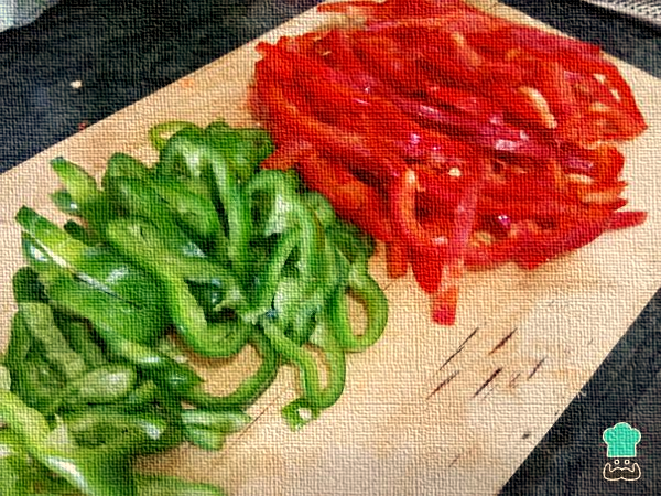 2._ Pica el ají dulce, los pimentones, los ajoporros y las cebollas del guiso en pequeños cubitos. Aprovecha también para picar las hierbas que utilices opcionalmente, como el perejil y el cilantro.