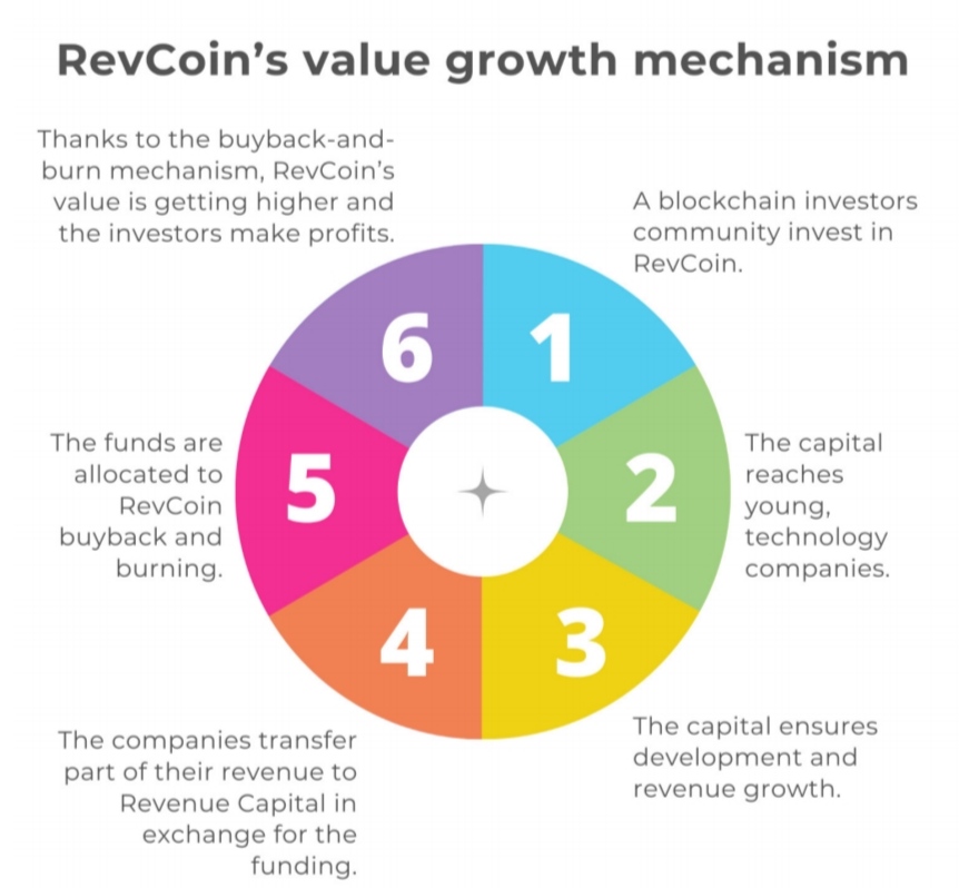 Revenue Capital organizations must carry out monthly burning of tokens and repurchase by assigning 10% of their incomes to that purpose; this process lessens RVC supply on the market and protects it from sudden price drops. But, the portfolio corporations that the company will sponsor determine the value of the coin.