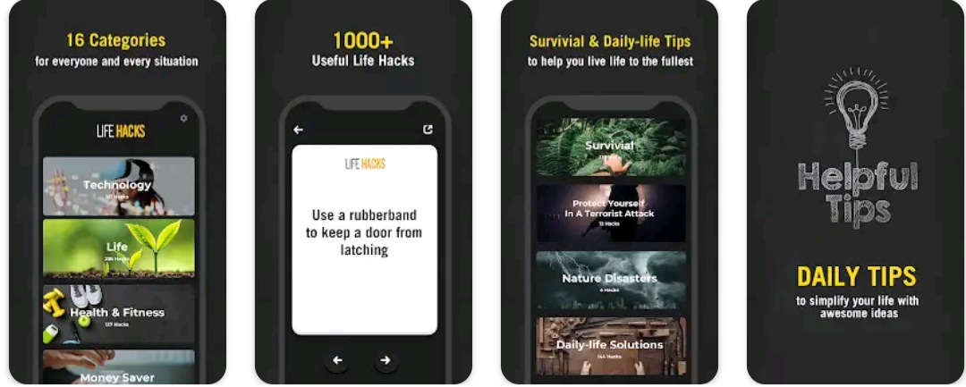 This app is amazingit can help you with any type of life hacks and it has a bunch of different options to help you with definitely install it and gives you great life hacks and it works it is totally worth it and plus it's totally free don't even have to loginor anyting all it does is just log in and there it is and there's a bunch of different life hacks pictures from I wish I could give it a billion stars but you know there's only five so I overall I love life hacks is not a waste of your time.
