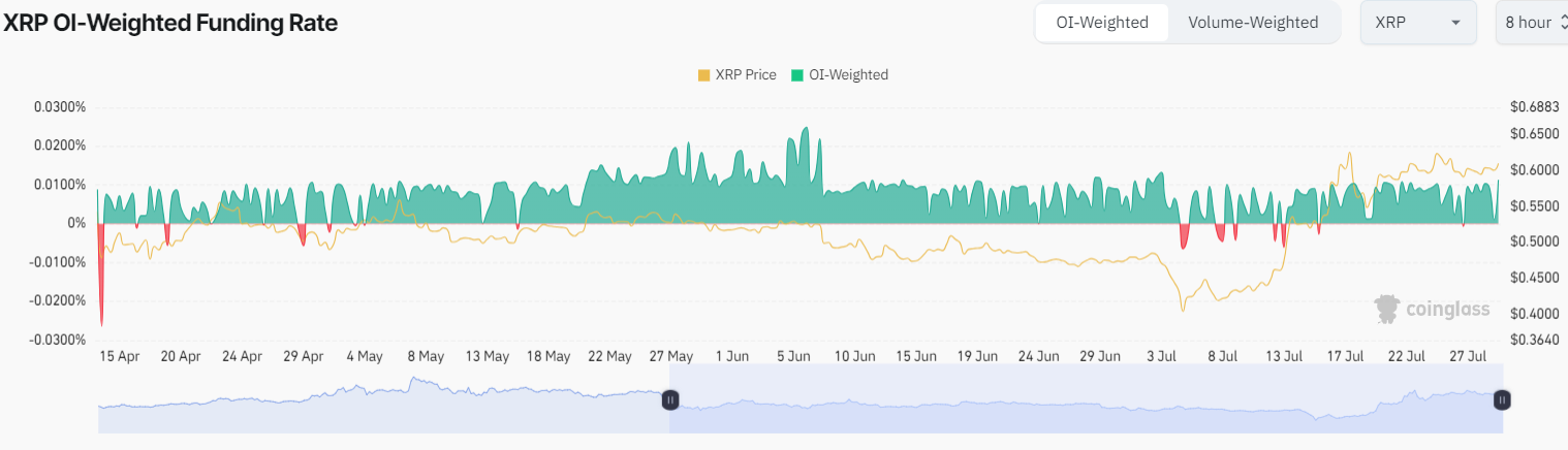 Currently, the funding rate for XRP is positive, suggesting that most investors are holding long positions.