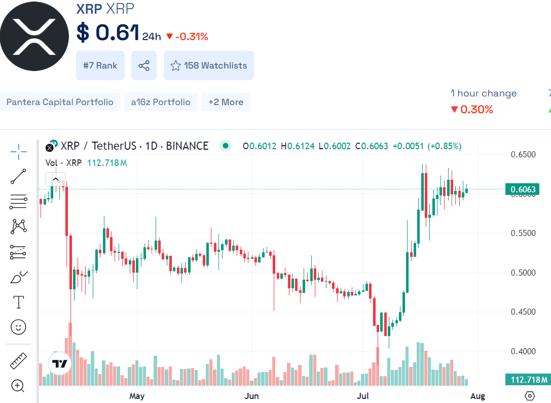 Over the weekend, XRP’s price traded at $0.60 with a 24-hour volume of $1.8 billion.