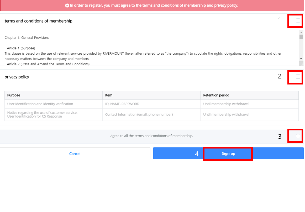 ○ Please read the Terms and Conditions page detail! Then agree to the terms and click the SIGN UP button!