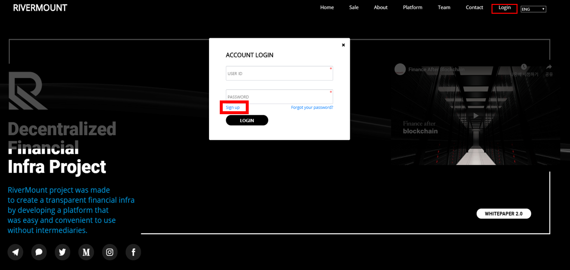 ○ After access, a login window will appear. Click the SIGN UP button! Alternatively, press the LOGIN button on the top menu.