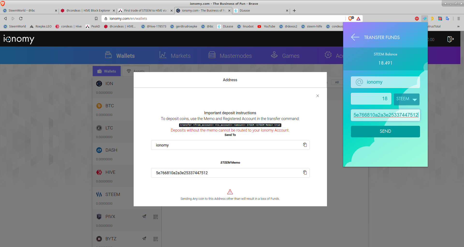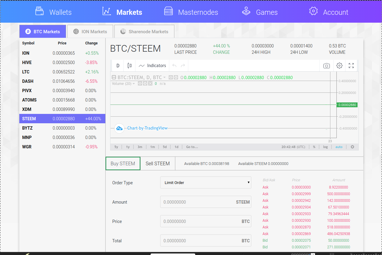 Steem handeln und tauschen mit ionomy