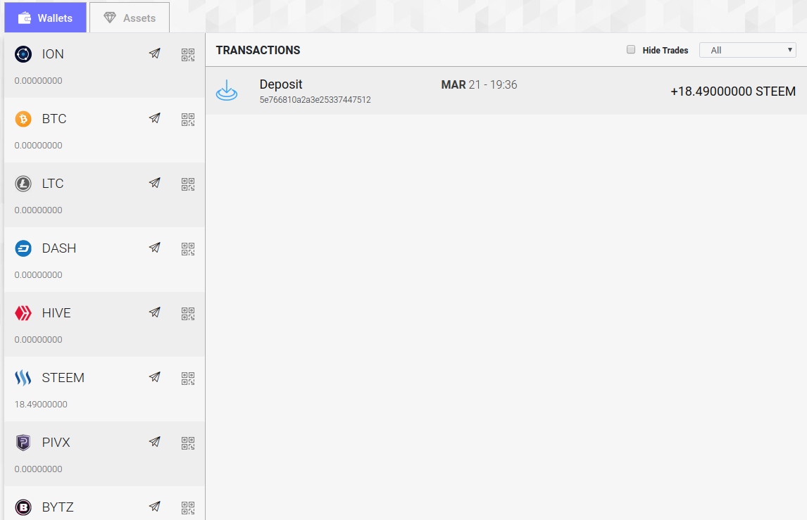 Ähnlich verhält sich auch die Einzahlung von Hive, BTC usw.