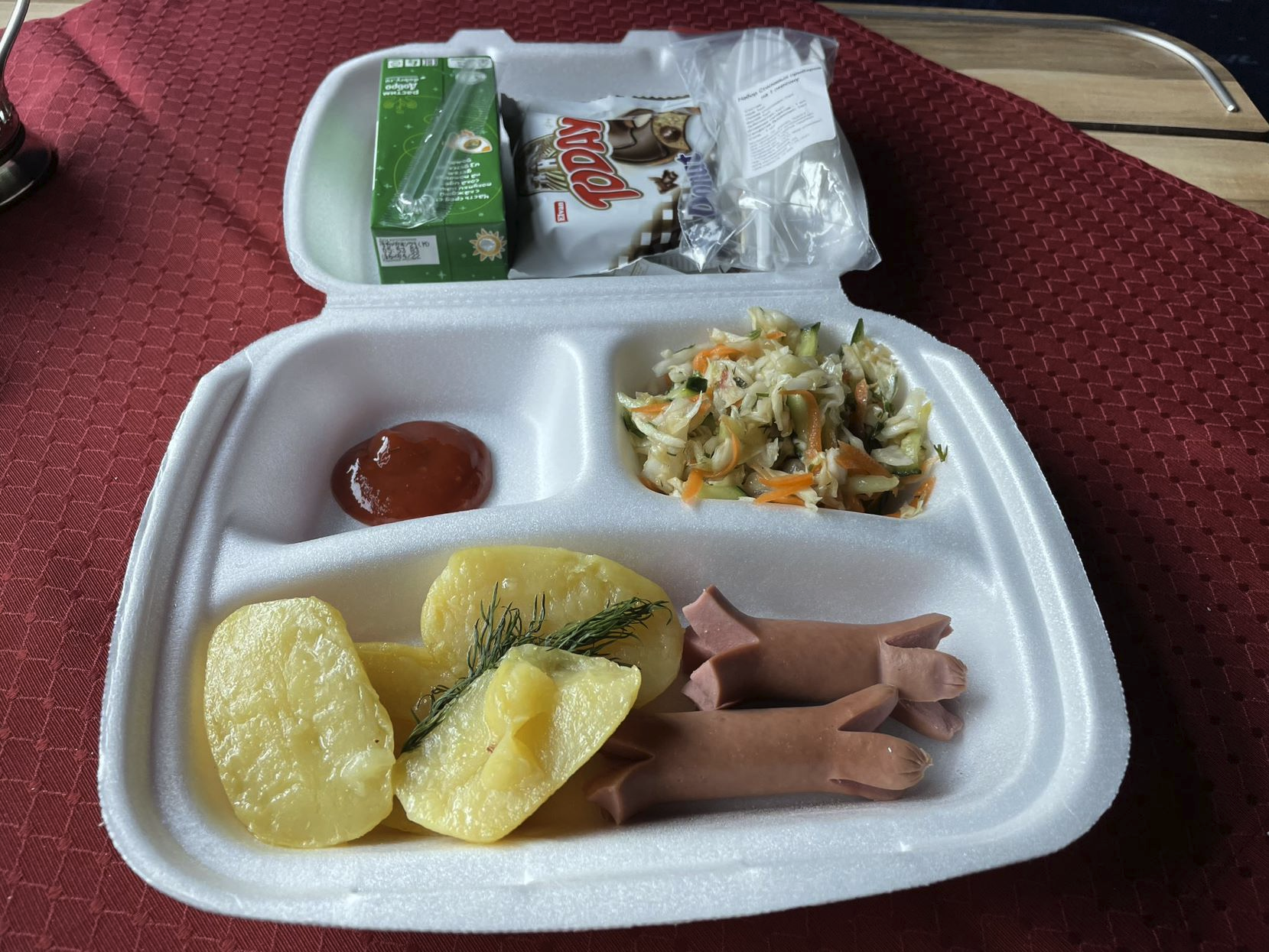 P.S. Фото с обратной поездки. 333 рубля за "комплексный ужин"... Ценами РЖД всегда отличались... Хотя по пути в Хабаровск я за 220р поел вкусненькой куриной ножки с рисом и салатиком.