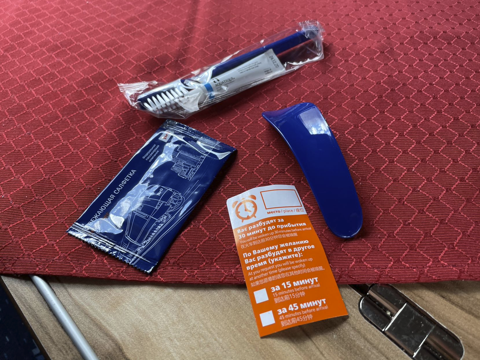 Пассажирам некоторых классов выдают наборчики и одноразовые тапки.