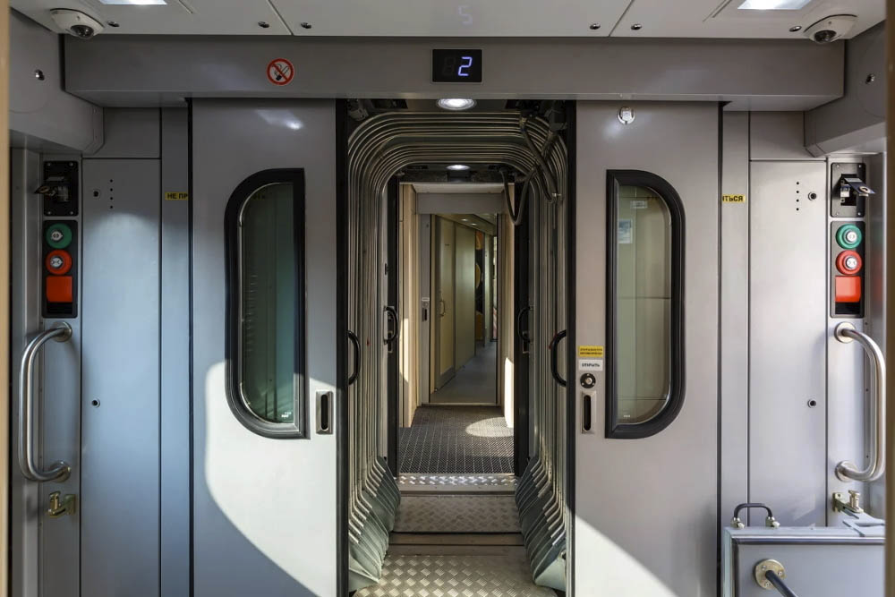 Суть в том, что один проводник обслуживает сразу два вагона (при этом с него сняли обязаность по уборке). А сами вагоны имеют тамбур и дверь только с одной стороны. Сцепка (а точнее межвагонный переход) тоже обновлен.