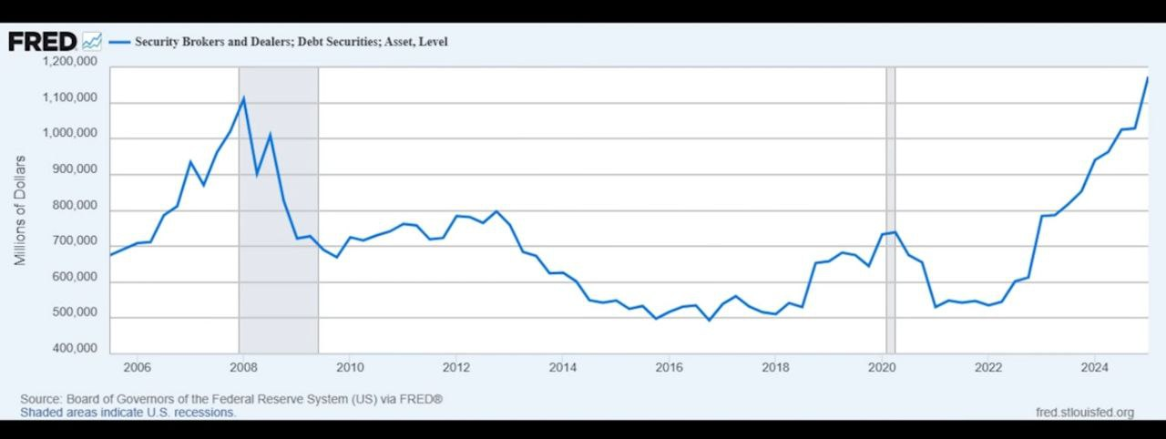 Этот показатель отражает уровень активов североамериканских брокеров и дилеров в долговых ценных бумагах США(например, облигациях, казначейских обязательствах, корпоративных долгах)
