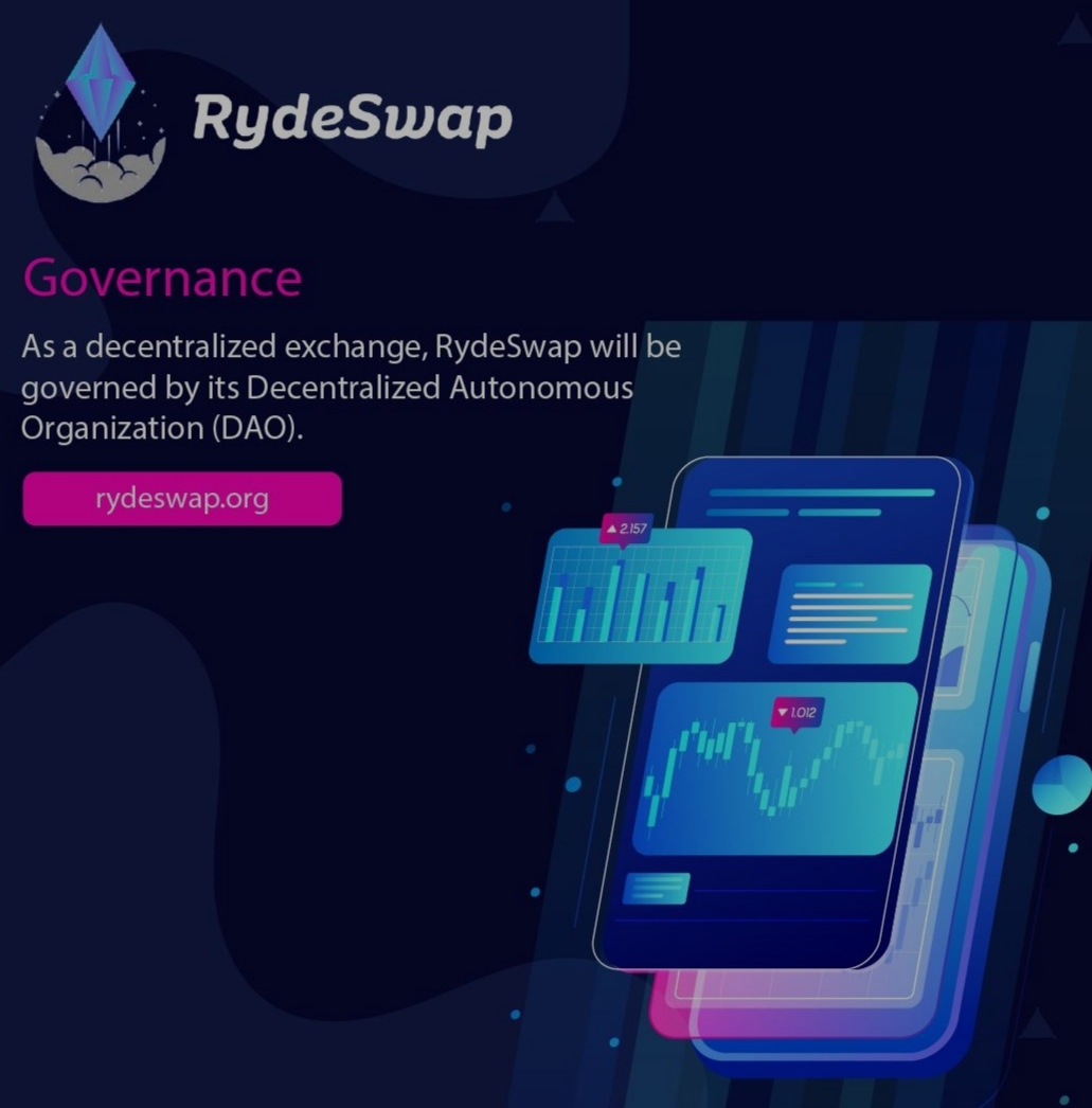Governance: Be a part of the Rydeswap organization and reveal the power of crypto by framing the destiny of decentralized finance. Through our organization DAO, we will consider some fundamental decisions, drive improvements and make an all the more impressive and firm financial structure.