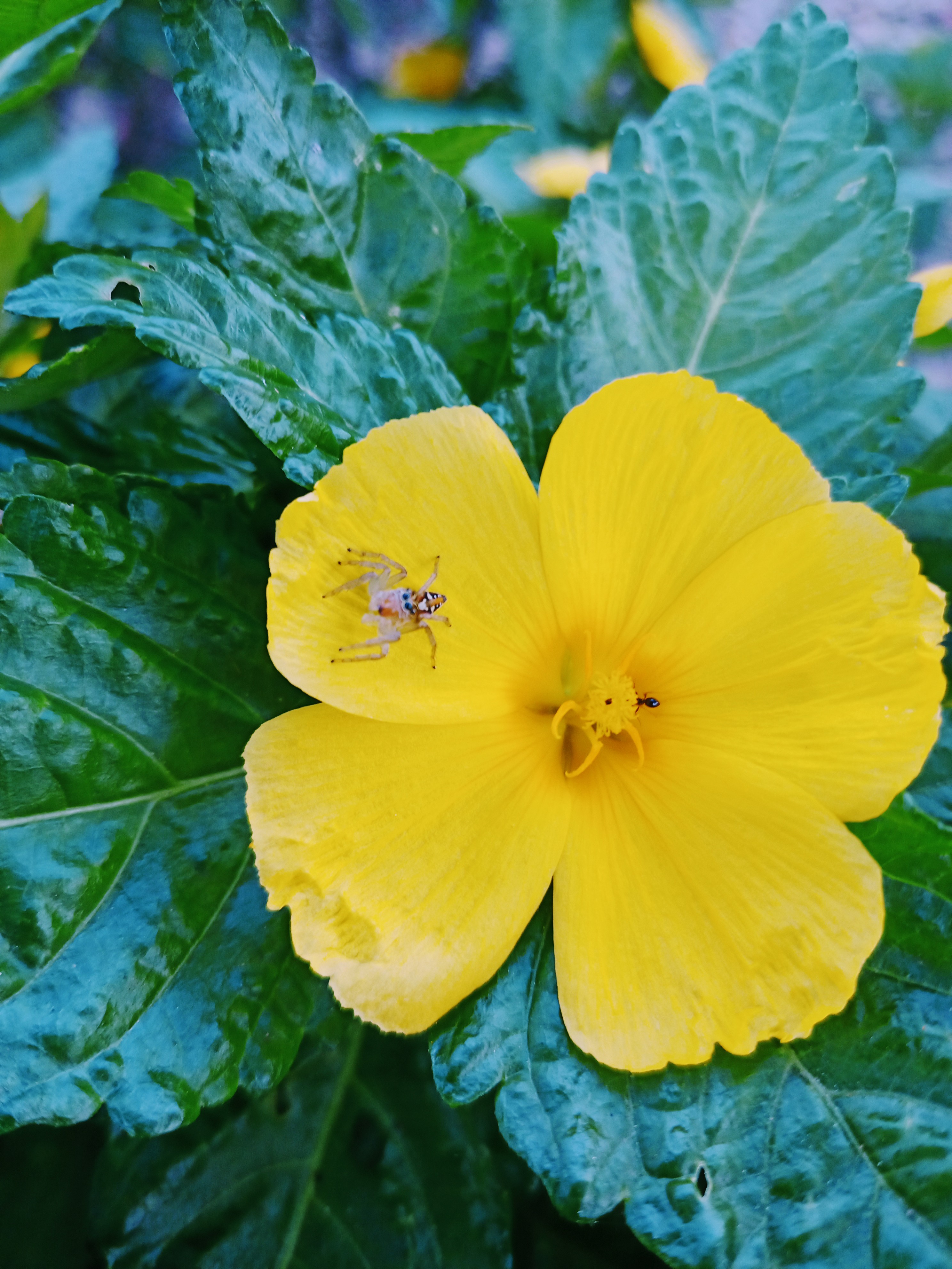 Que linda historia, muy creativa al usar tan hermosas fotos de la flor amarilla y araña como parte principal de la narración, muchos éxitos.
