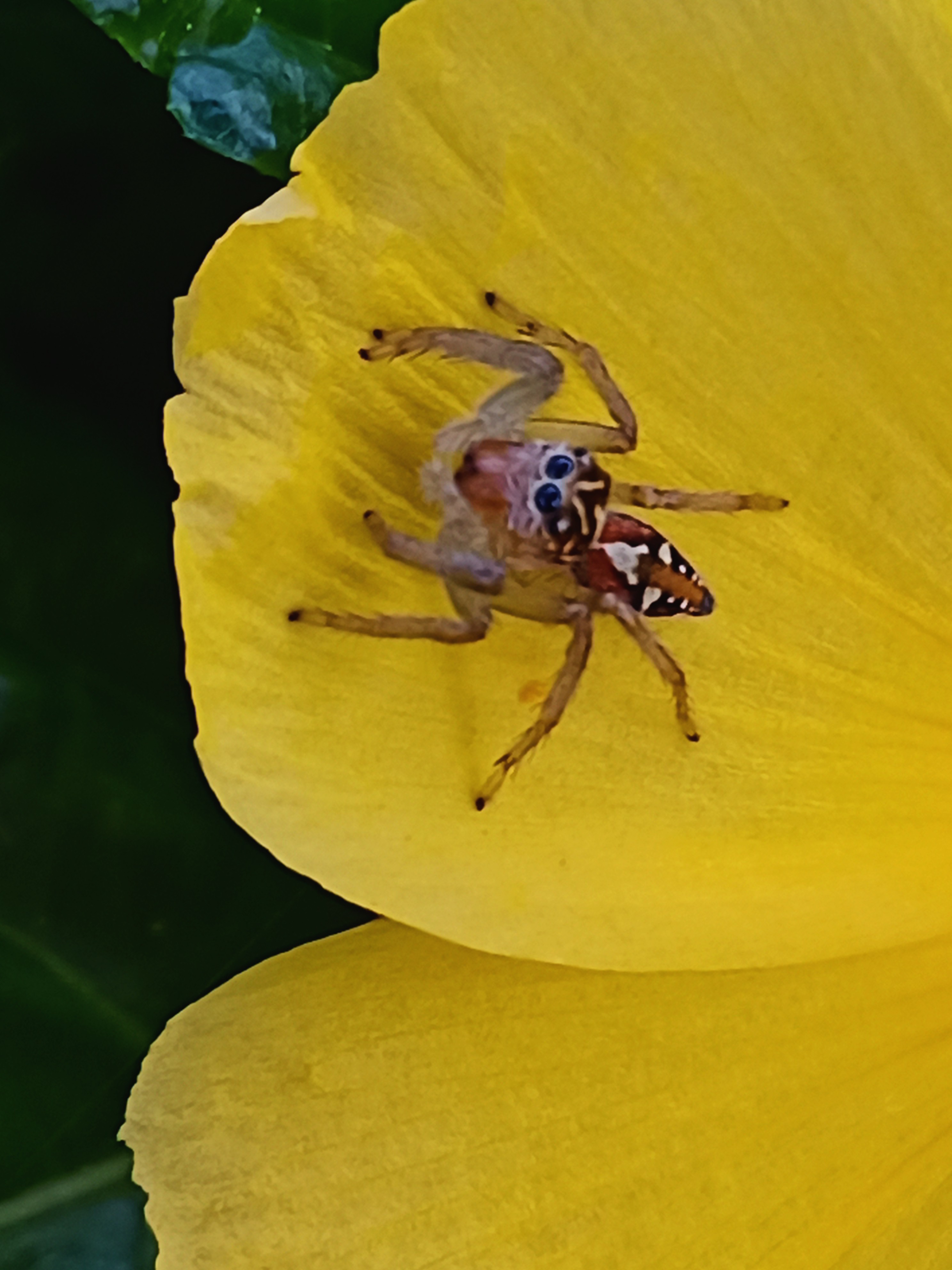 Saludos me alegra que te haya gustado, realmente me pareció muy curioso que cuando me acerqué a la flor saliera esta arañita tan rara y estaba pendiente que no me acercara.