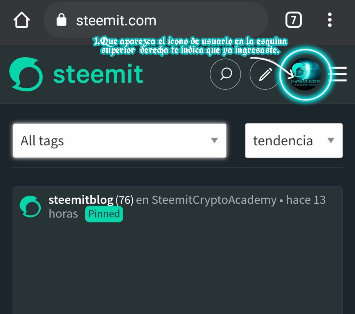 2- Lo segundo que debes hacer, es presionar el logo de Steemit que aparece en la parte superior izquierda de la página.