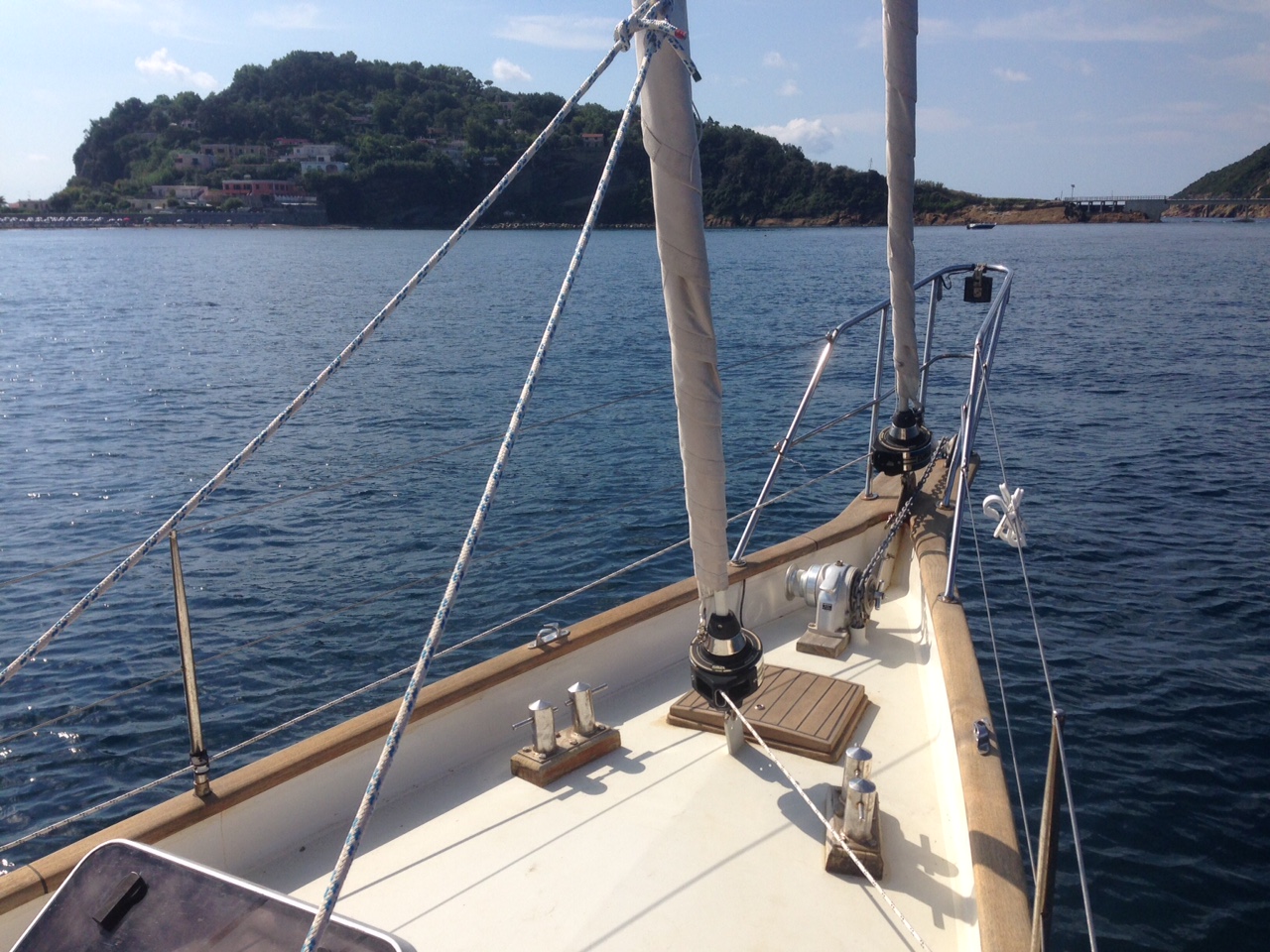 Muendo is a steel 40 foot (12.2 m) long, cutter rigged (meaning two head sails) classic sailing boat. If somebody asks what kind of boat it is, I never know what to say, as it is an unknown design.