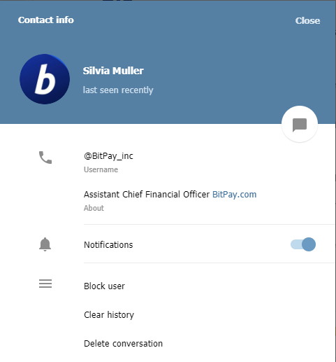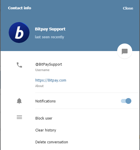 En su mensaje original me decía que para mas información contactara la cuentas en telegram @bitpay_inc y @BitpaySupport los contacté.