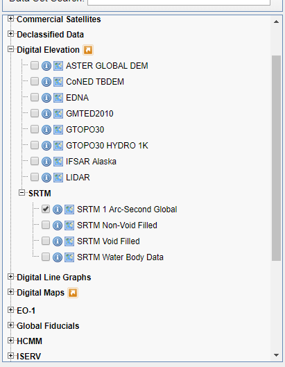 Let's say that I want to create an airport simulation and I would like to give the controllers the possibility to train in the most realistic way, by having the terrain features simulated in an accurate way; I just need to power up Earth Explorer from https://earthexplorer.usgs.gov/, select the area and the dataset - pictured in right - the SRTM 1 Arc-Second Global, which is the best source for digital elevation acquisition, and select any additional criteria I would have and download it.