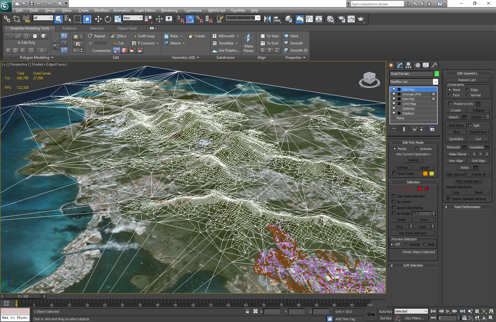 By using a 3D Modeling application such as Autodesk 3ds max or Blender (open source), you can then integrate the data in your own scene. You can blend the heightmap with the colored helper and the satellite image, all from the public domain. The imported height-map and the height data makes sure to always maintain the highest accuracy of your simulation.