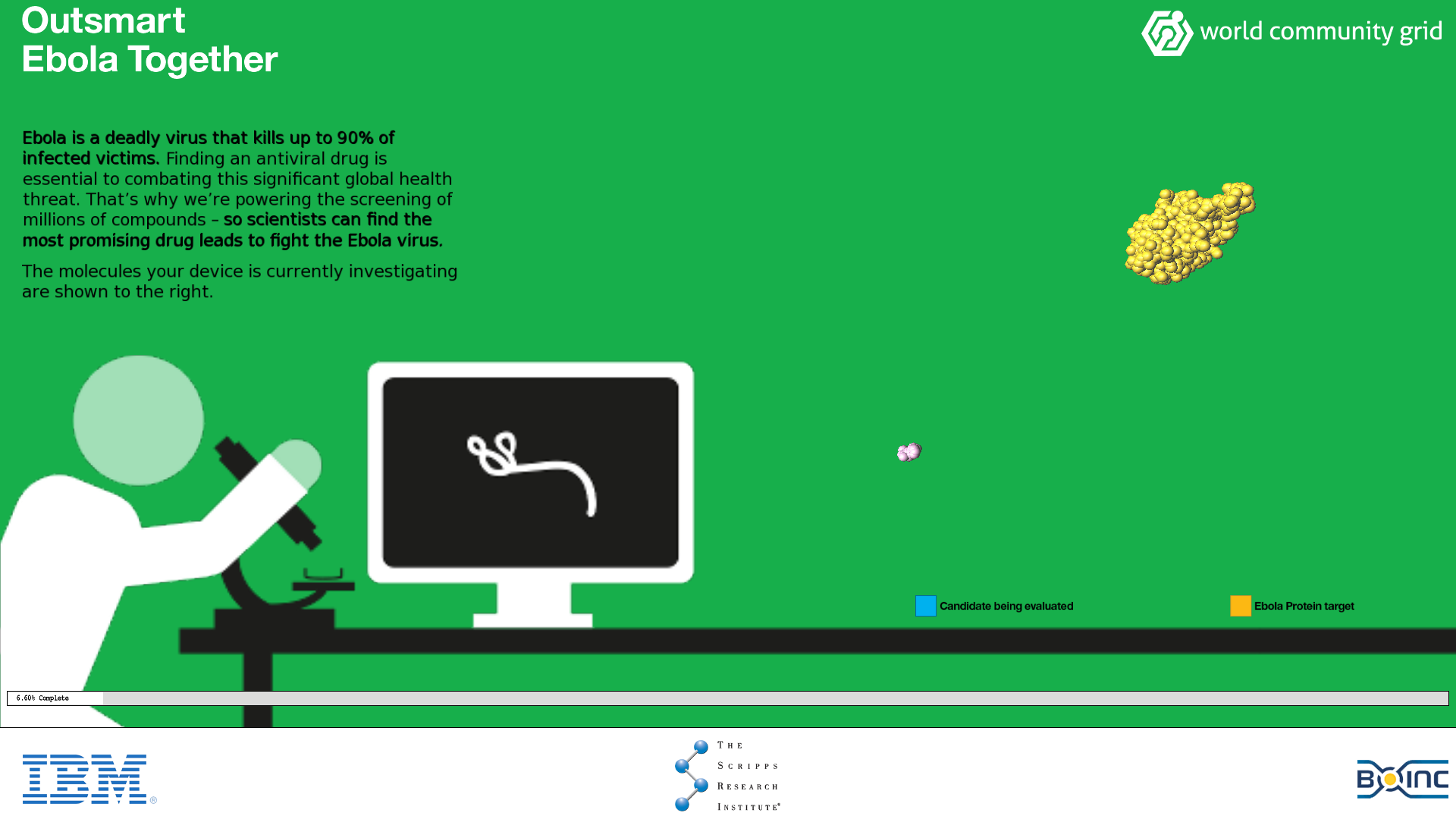 The BOINC screen saver in action: searching for a Zika virus medicine (World Community Grid OpenZika)