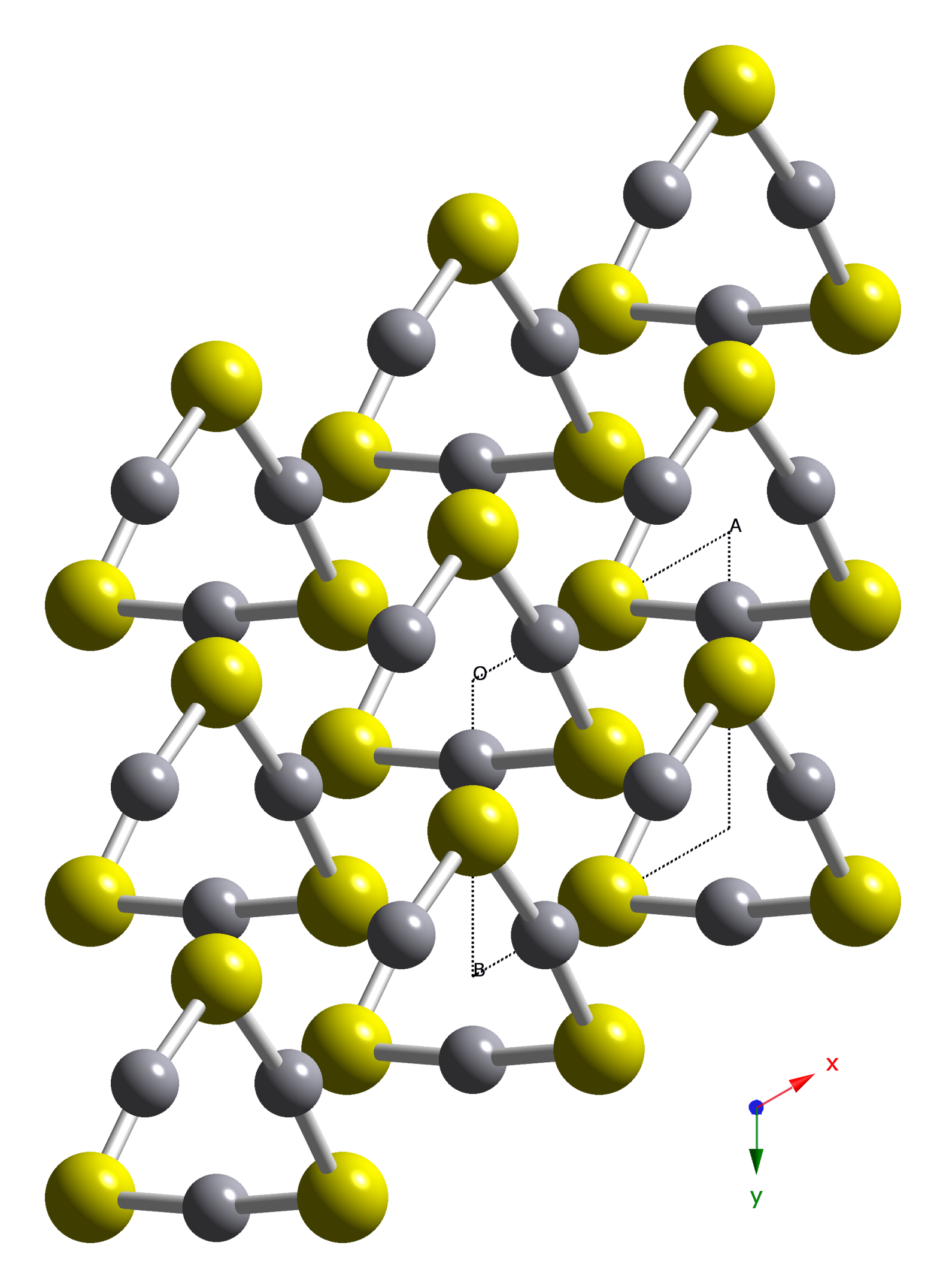 Red Cinnabar has a structure of the Trigonal Crystal System, which means it has a threefold axis of rotation. Objects with a threefold axis of rotation have a structure that repeats with every 120 degree turn, like a solid equilateral triangle. You can see repeating triangles in the Red Cinnabar ball and stick model I have attached below. In the image, Sulfur is yellow and Mercury silver.