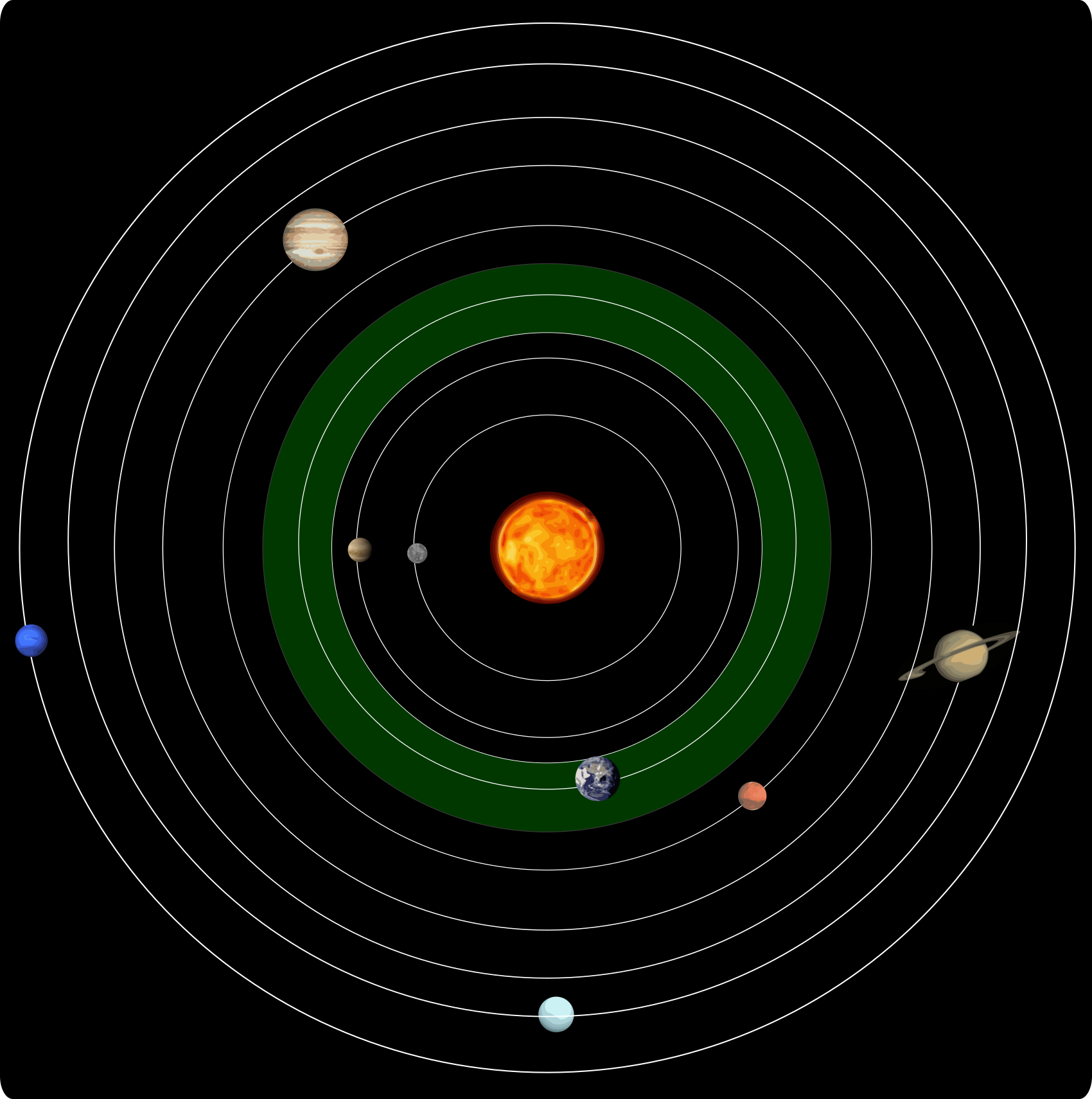 Mars Venus Earth Uranus Neptune saturn Jupiter Mercury Sun