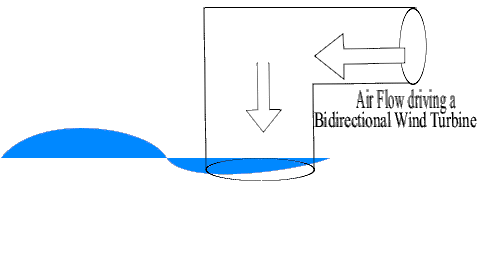 The working is simple. A chamber with a wind turbine is located above the water column. As the water rises, air is pushed out of the chamber, and as it falls, air is sucked back in. This movement of air drives our turbine. But wait, if the air flow in one direction (say outward) rotates the turbine in one direction (say clockwise), shouldn't the turbine rotate in opposite direction when the flow reverses? A turbine only has blades after all, right? Well, for any normal turbine, air flow in opposite direction (inward) would obviously cause an (say anti-clockwise) rotation. Or at least resist the clockwise movement of the turbine, thus making it inefficient.