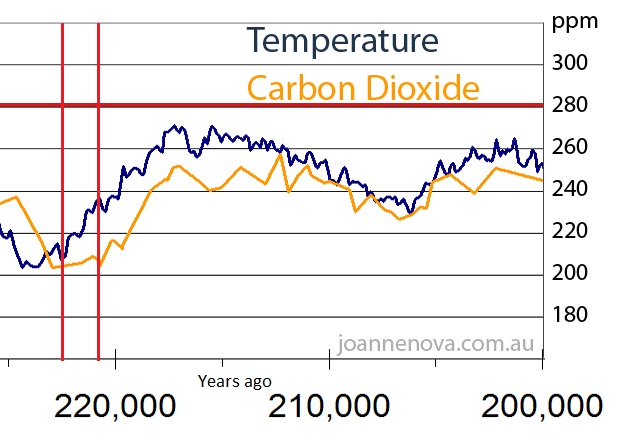 I'd like to remind people that the Climate has kept changing throughout the course of earth's history, often out of sync with CO2 level, without any human intervention. If you look at the graph below, you'll find that between the two vertical lines at one of the turning points, the level of CO2 wasn't increasing but the temperature was and there are many such turning points in the historical data. In fact, the disconnect has been found to be as much as 800 years wide.